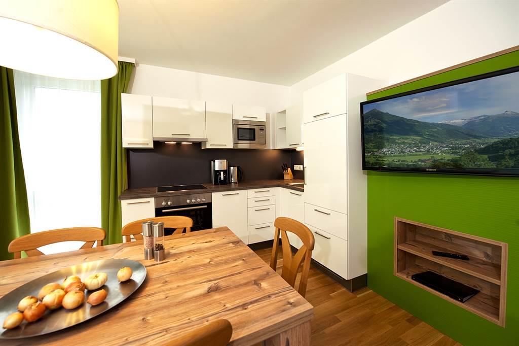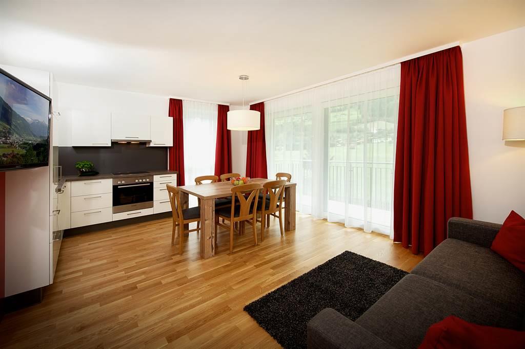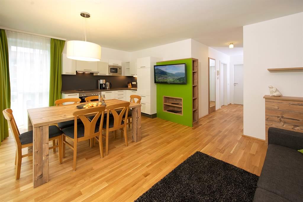 Wo alpiner Lifestyle gelebt wird – erst 2012 eröffnet, bestechen unsere fünf, rauchfreien Apartments durch ihre zeitgenössische und stilvolle Einrichtung. Hochwertige Vollholzmöbel und warme Farben verleihen den 50-69m² großen und für 2-6 Personen ausgelegten Wohnungen Charme und einen eigenen Charakter. Im ersten Stock oder im Dachgeschoss gelegen, genießen Sie hier schon beim Aufstehen einen unvergesslichen Blick auf die Gasteiner Berge. Alle unsere Wohnungen halten eine voll ausgestattete Küche bereit, sodass Sie aktive Ski- und Wandertage mit einem selbst zubereiteten Abendessen ausklingen lassen können.