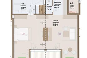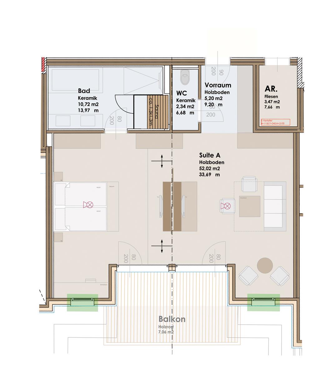 Zimmer ca. 24 m² mit Dusche, WC, Fön, Sitzecke, Radio, Telefon, Sat-TV, Safe, Balkon, WLAN