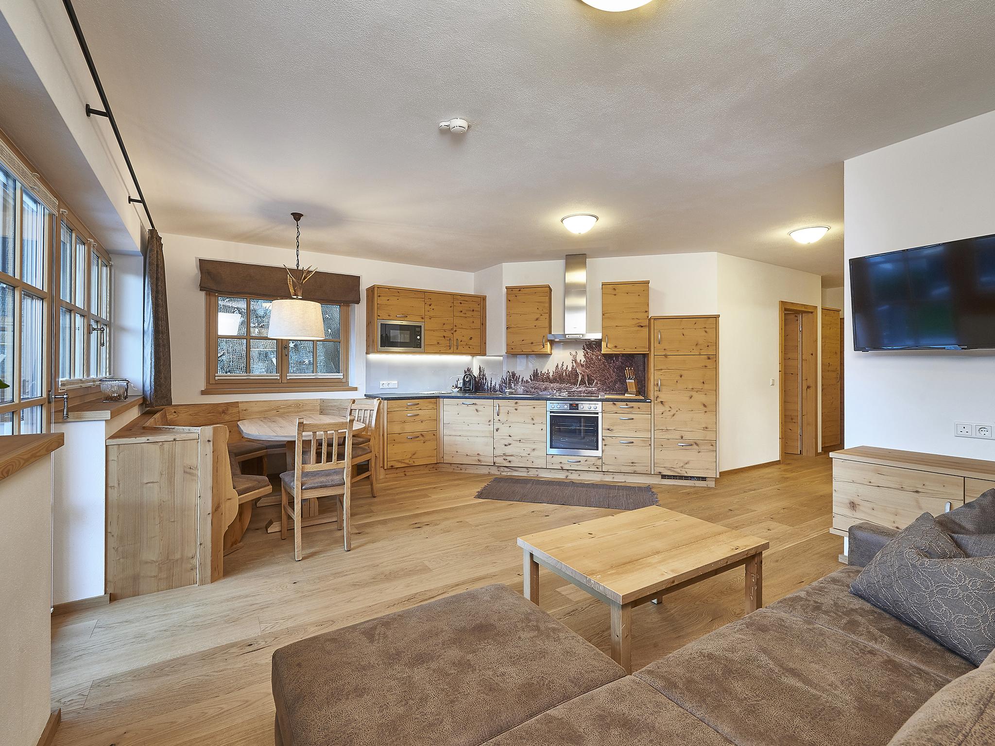 • Vollwertige Kücheneinrichtung (Ceran-Kochfeld, Mikrowelle, Geschirrspüler, Teller, Besteck, usw.)
