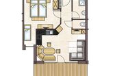 • Vollwertige Kücheneinrichtung (Ceran-Kochfeld, Mikrowelle, Geschirrspüler, Teller, Besteck, usw.)