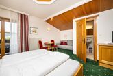 Großzügiges DZ mit Ausziehcouch und Sitzgelegenheit, Badezimmer mit DU/WC, TV, Internetanschluss, Balkon südseitig mit schönem Blick auf unseren Talschluß von Flachau.