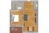 1x Wohnraum mit vollausgestatteter Küche, Sitzecke mit Tisch, ausziehbares Sofa (für 2 Pers.),
