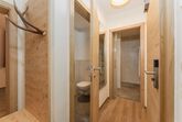 1x Badezimmer mit Dusche, Handtuchwärmer, Haarfön und Kosmetikspiegel
