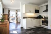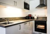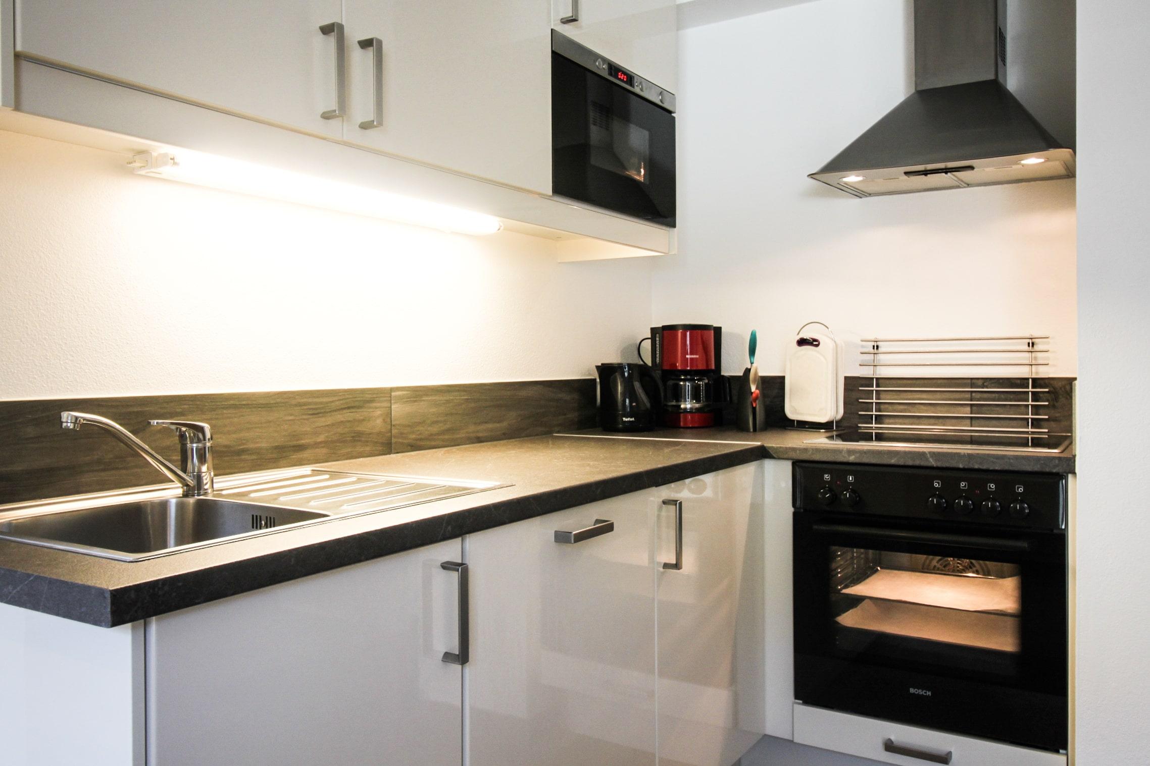 • Küche mit Backofen, Herd, Mikrowelle und Geschirrspüler
