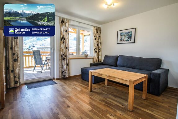 Komfort-Ferienwohnungen im Zentrum von Kaprun. Ihnen steht drei Doppelbett-Zimmer, eine vollwertige Küche, zwei Bäder, eine IR-Kabine, ein gemeinsamer Wohnraum und eine großzügige überdachte Terrasse mit Blick auf das Kitzsteinhorn zur Verfügung.