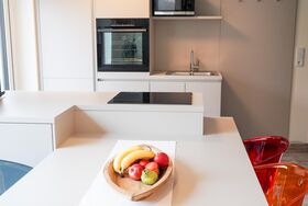 Vollausgestattete Wohnküche mit privater 30m² Sonnenterasse und Panoramablick im Erdgeschoss
