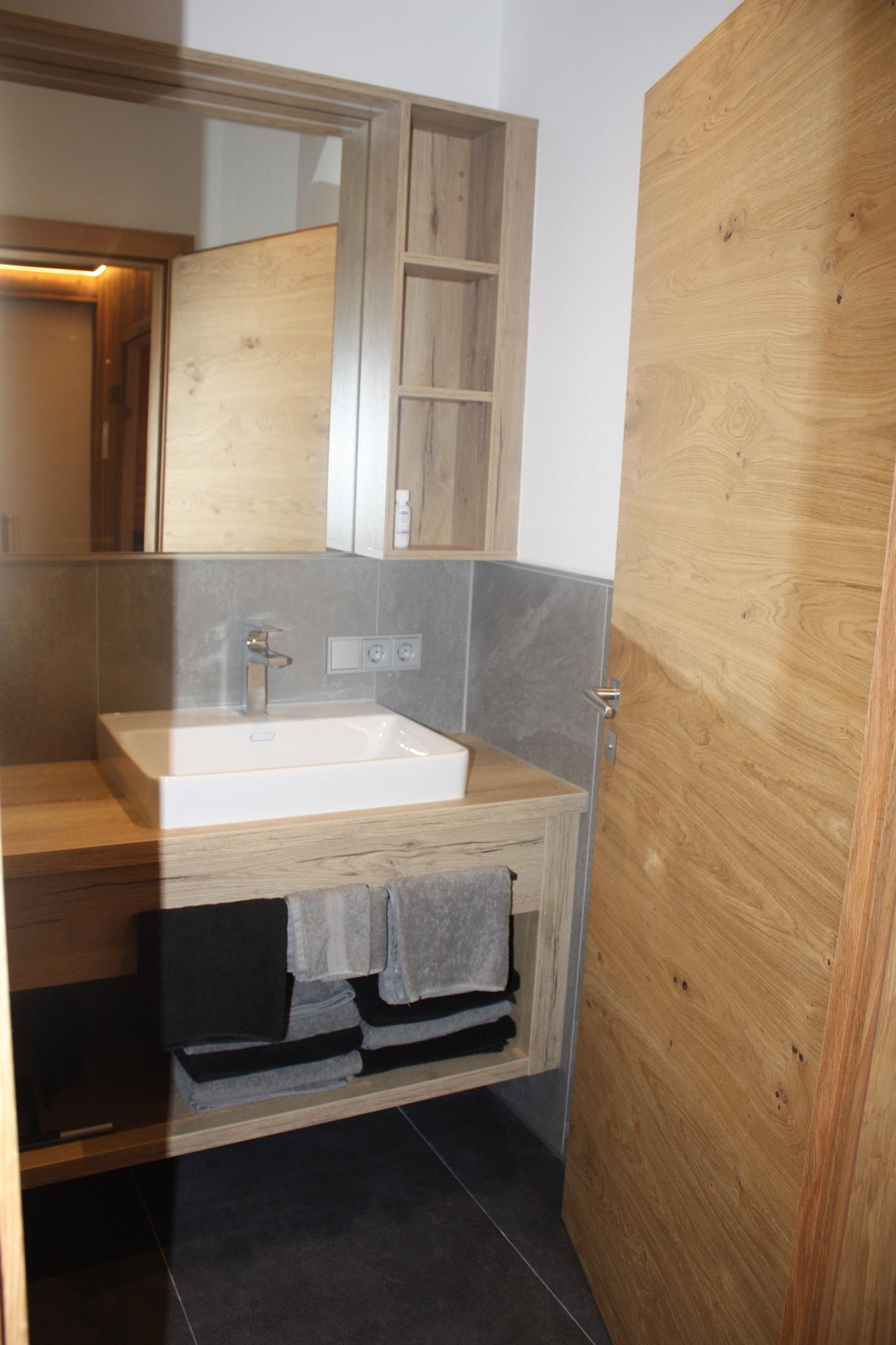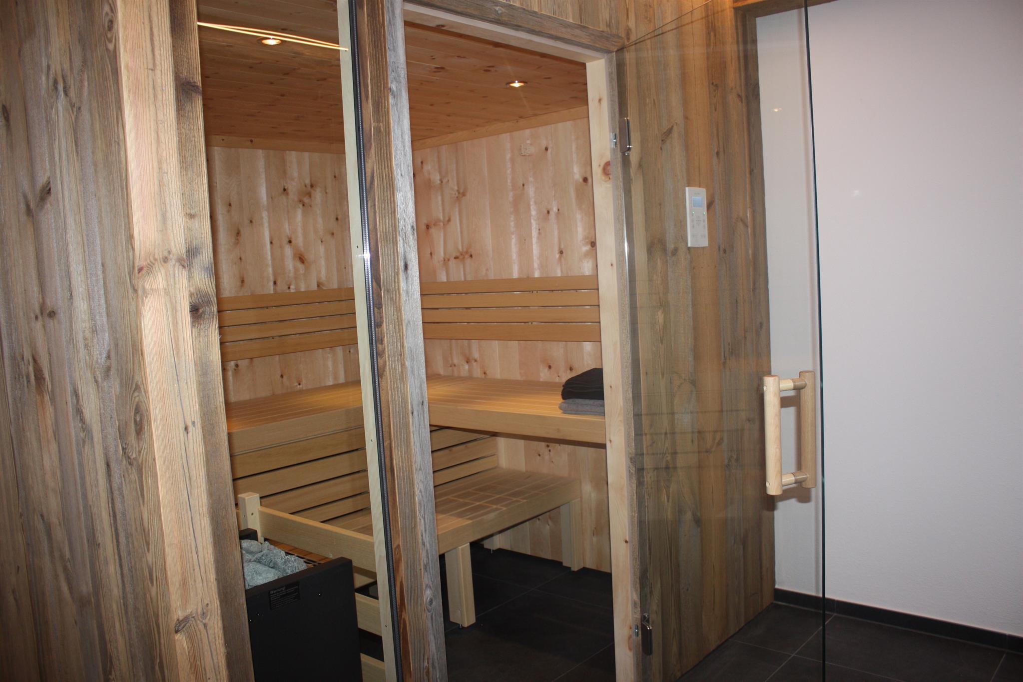 • Private Altholz Biosauna inkl. Dampfoption direkt im Apartment mit Innenausstattung aus hochwertiger Zirbe für Ihre Gesundheit und Starterparket mit einer Auswahl an Saunaaufgüssen