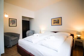 Die Unterkunft verfügt weiter über einen Aufzug, ein Bügeleisen/-brett, Internet (WLAN), einen Föhn, eine Zentralheizung sowie einen Fernseher. Die Küche mit elektrischem Kochfeld ist ebenfalls voll ausgestattet: Dort findet sich ein Kühlschrank, ein Backofen, Geschirr/Besteck, Kochutensilien, eine Kaffeemaschine, ein Toaster und ein Wasserkocher.