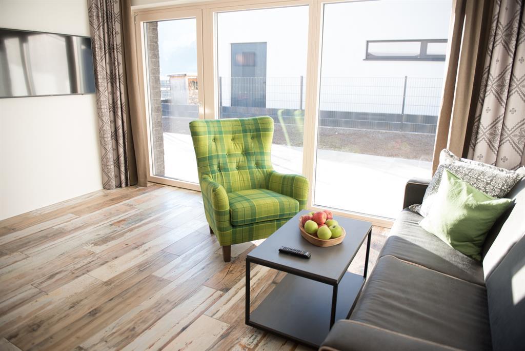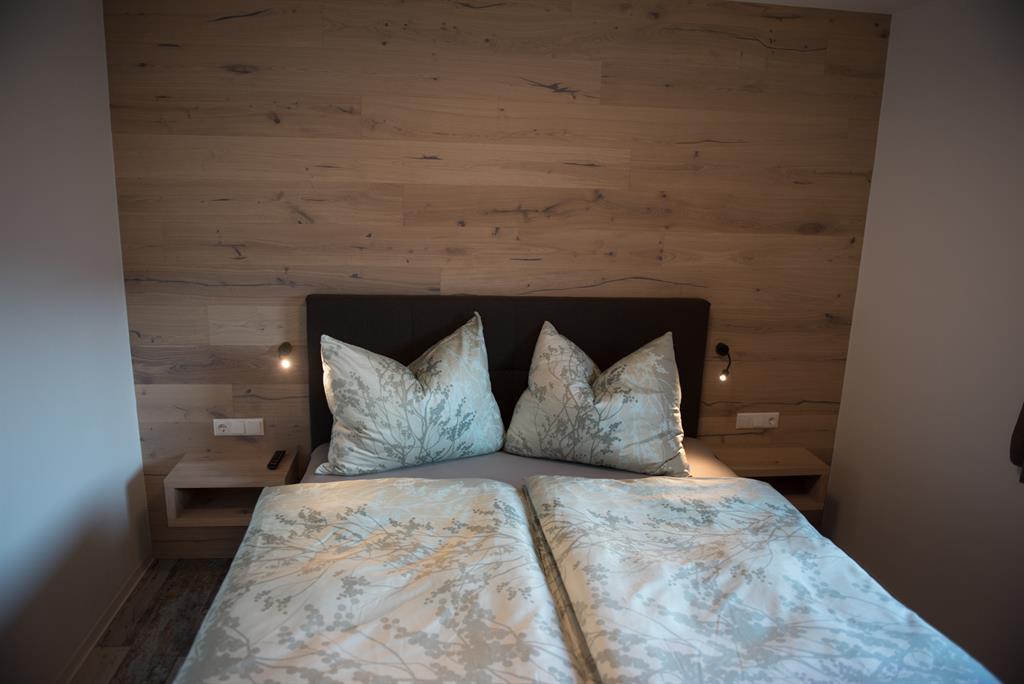 Das modern-rustikal eingerichtete Appartement besteht aus einem Schlafzimmer (1 x Doppelbett), einem Bad mit Dusche und WC, großer Wohn- und Kochbereich mit einer ausziehbaren Schlafcouch, die mit einem Handgriff in ein vollwertiges Doppelbett für 2 Personen umfunktioniert werden kann, Abstellraum und Flur.