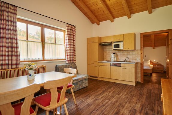 Komfortables Appartement (80 m²) mit schönen Blick auf Filzmoos, in ruhiger, sonniger Lage. In Holzbauweise und sehr gemütlich. Wellnessbereich im Hotel inklusive.