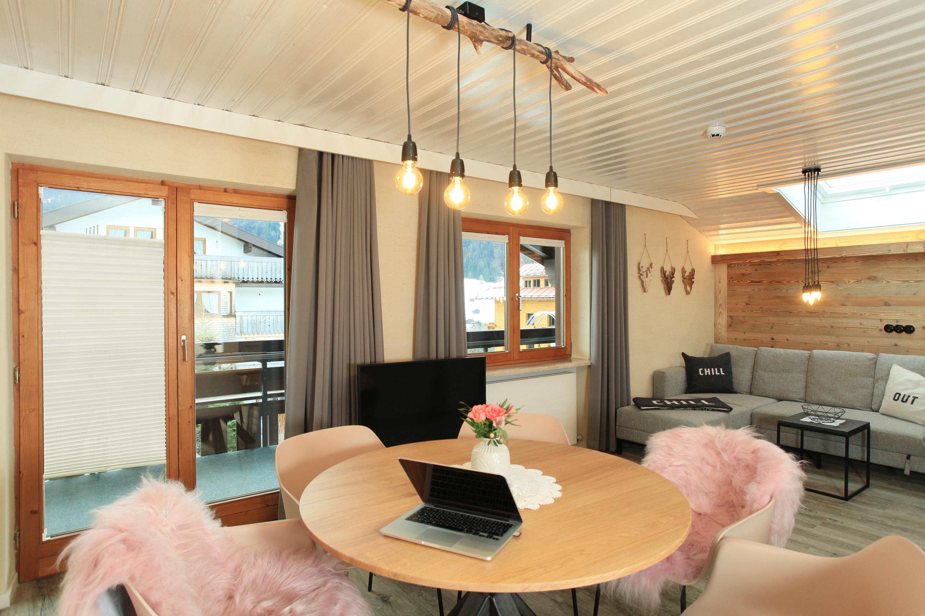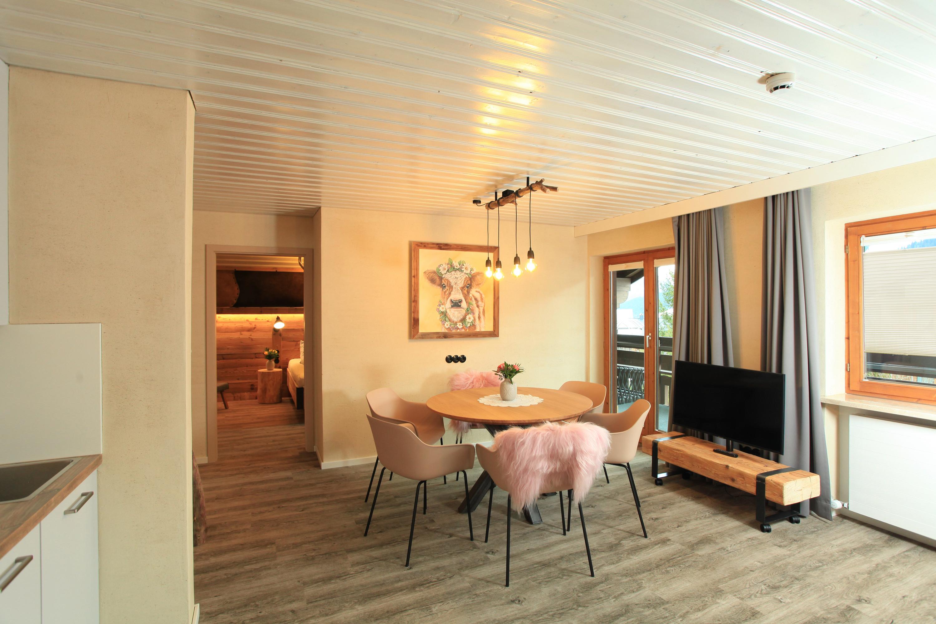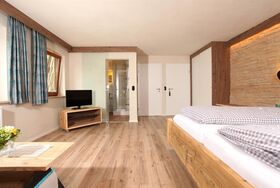 Doppelzimmer „Ifenblick“ für bis max. 4 Personen.Das Ifenblick verbindet die Tradition der Alpen mit modernem Design!Ein hochwertiges Doppelbett vom heimischen Schreiner,gemütliche Schlafcouch für 2 Personen,Flatscreen SAT-TV,WLAN,Safe,Radio,Wasserkocher, Kühlschrank,Designerlampen,Designvinylboden,Südwestterrasse mit beeindruckendem Bergblick auf die Kleinwalsertaler Alpenwelt,Bad mit Dusche+Regendusche/WC mit Hotelfön, Größe 34 m²- mit Verbindungstüre optional für Familien zubuchbar.