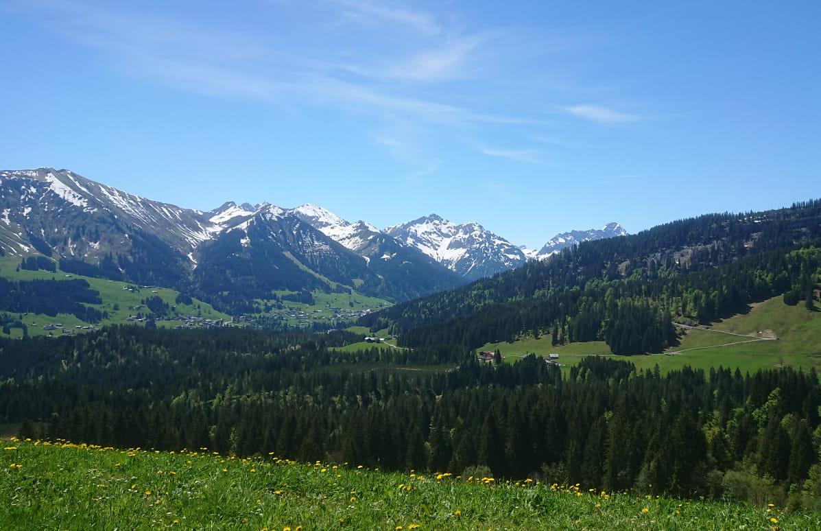 Ferienwohnung mit 140 qm, behindertengerecht, geeignet für 4-9 Pers. Erdgeschoß, sonnige Südlage mit herrlichem Blick auf die Walser und Oberstdorfer Berge.