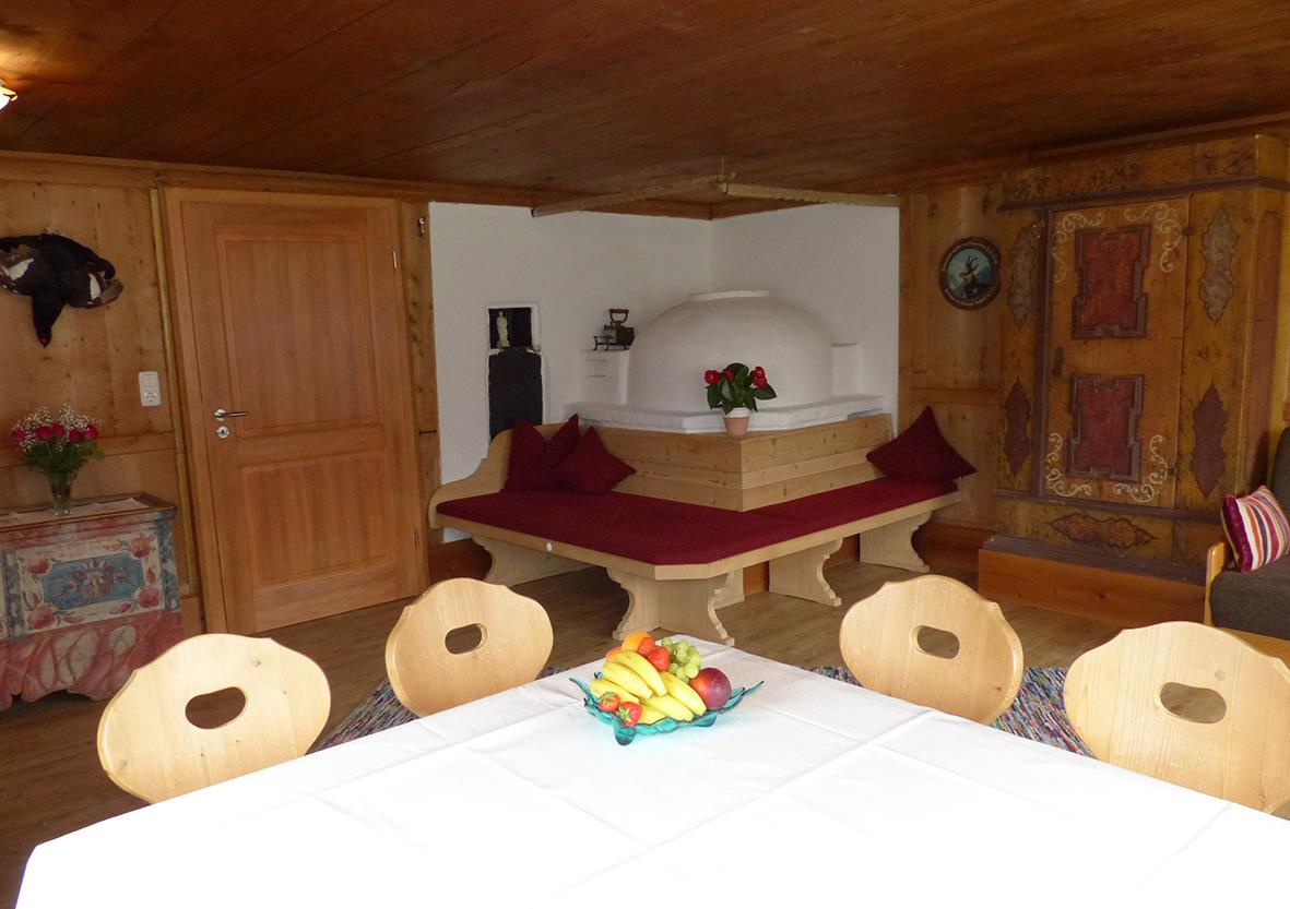 3 separate Schlafzimmer mit Doppelbetten, ein Zimmer + Etagenbett. Große WalserStuba mit Kachelofen. Vollständig eingerichtete Wohn-Küche mit Spülmaschine, kleine Speis. Essecke mit Ausgang zur Terrasse und Liegewiese, Badezimmer mit Wanne und befahrbarer Dusche, separates WC. W-LAN kostenlos.