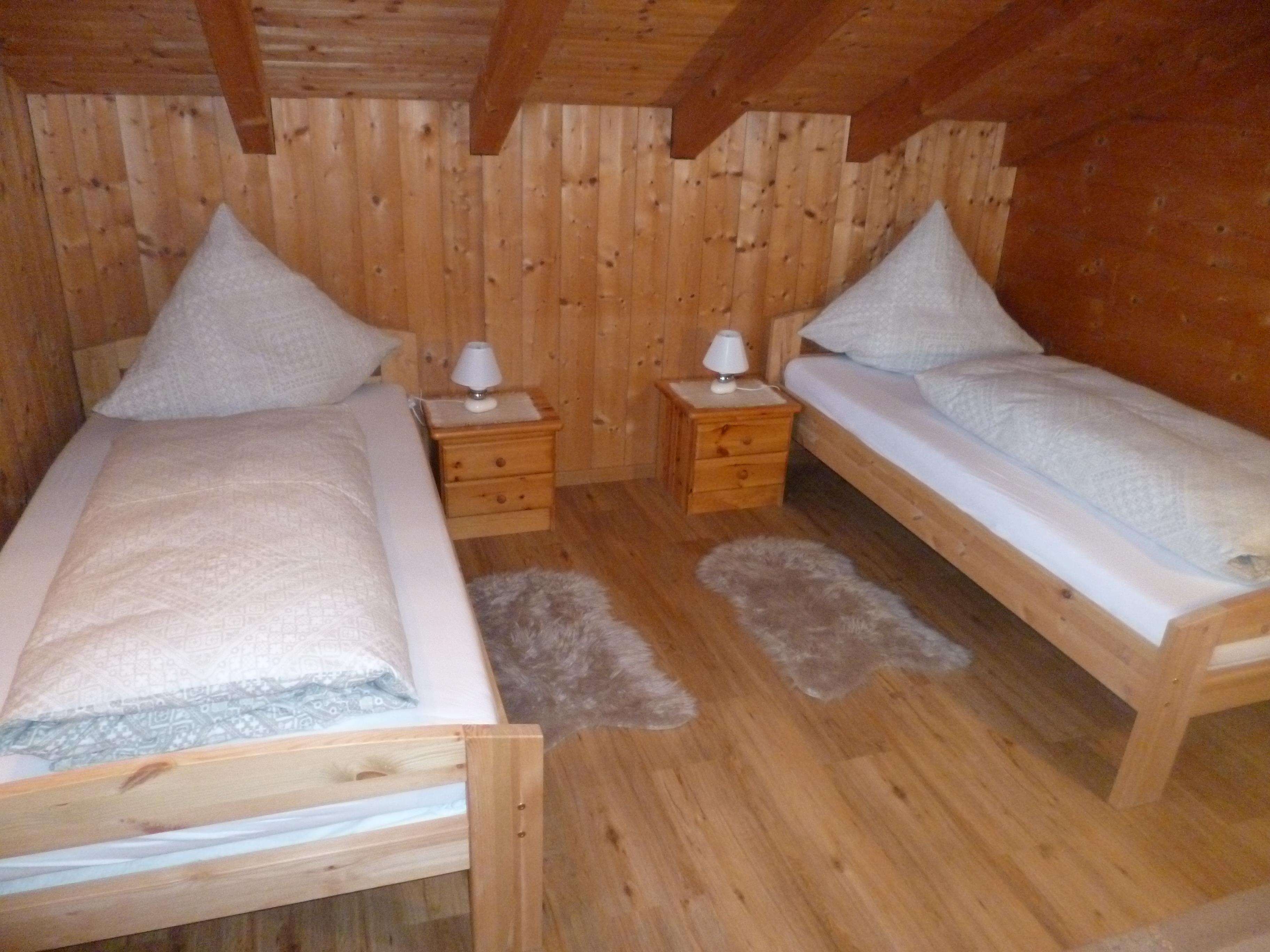 Herzlich willkommen in unserer charmanten Dachgeschosswohnung in Holzbauweise! Freuen Sie sich auf eine behagliche Atmosphäre und zwei separate Schlafzimmer (eines mit Doppelbett, eines mit zwei Einzelbetten 200 x 100 cm). Die Küche ist komplett ausgestattet, inklusive Spülmaschine und Essecke.