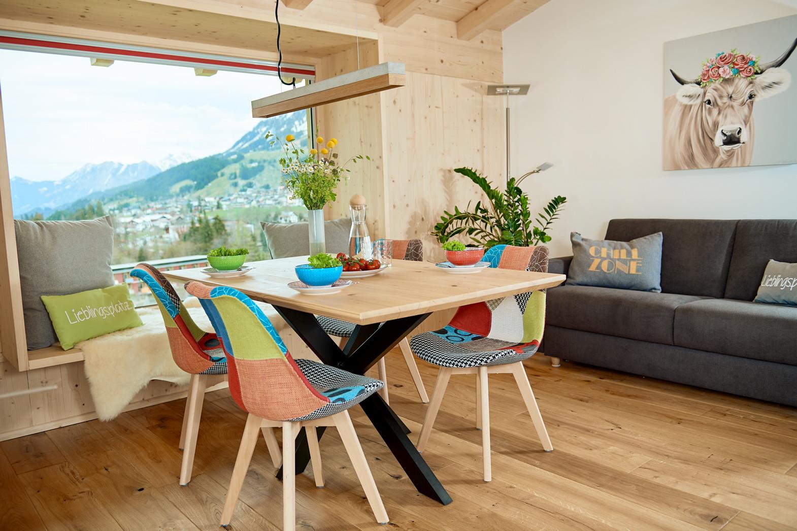 In unserem kleinen Liebesnest werden Sie im Wohn-Eßbereich auf unserem Sitzfenster einen grandiosen Ausblick auf Riezlern haben. Im angrenzenden Schlafzimmer werden Sie morgens von der Sonne geweckt. Die Wohnung ist mit einer hochwertigen Nobilia Küche voll ausgestattet. Auf dem bequemen Schlafsofa mit Lattenrost und vollwertiger Matratze im Wohnbereich können zwei weitere Personen nächtigen.