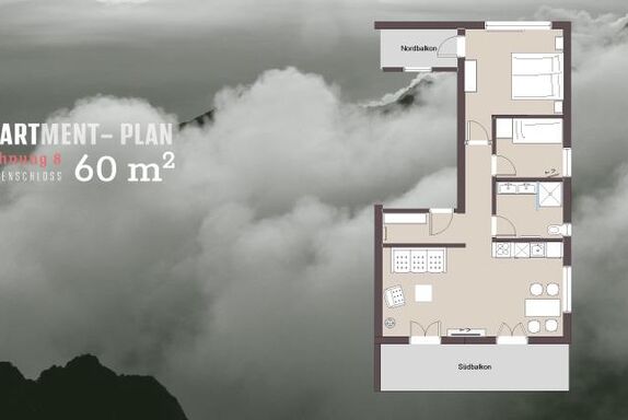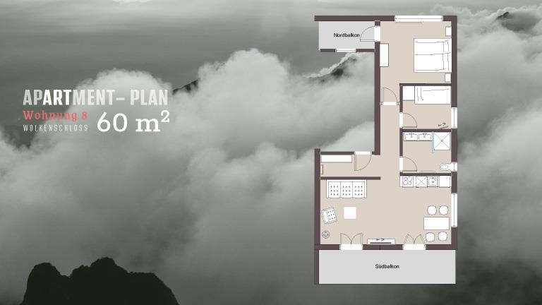 Im 2.OG, 60 qm, mit Süd- und Nordbalkon, perfekt für 2 - 4 Personen.