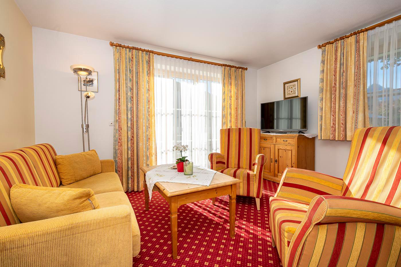 Die Wohnung Kanzelwand liegt im Erdgeschoß mit schöner Terrasse und direktem Zugang zum blühenden Garten mit Bestuhlung und Sonnenliegen. Liebevoll und komfortabel im Landhausstil eingerichtetet verfügt die Wohnung über ein Schlafzimmer und ein Wohnzimmer, Flachbildschirm TV, Zimmersafe, Radio-CD Player. Neue Küche mit gemütlicher Eßecke, Diele und gratis Wifi. Badezimmer mit Badewanne, Bademäntel, Saunatücher, Haar-Fön und separatem WC.