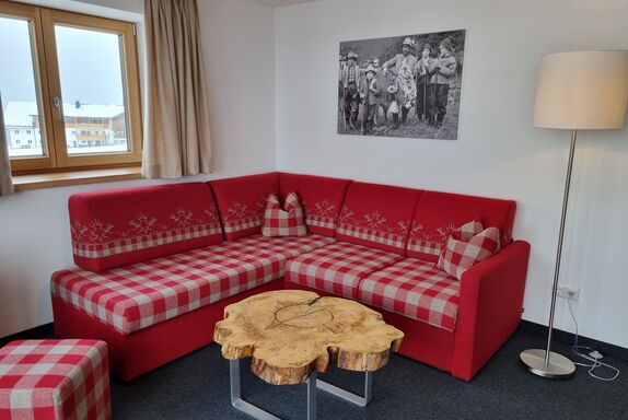 - Wohnraum mit ausziehbarer Komfort-Schlafcouch für 5. u. 6. Person