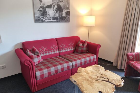 - Wohnraum mit ausziehbarer Komfort-Schlafcouch für 5. u. 6. Person