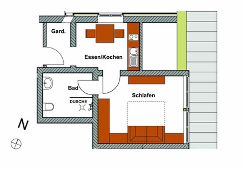 Lage • Gästehaus Alpina - Appartement "9" - Wohn-Schlafraum, Dusche, WC