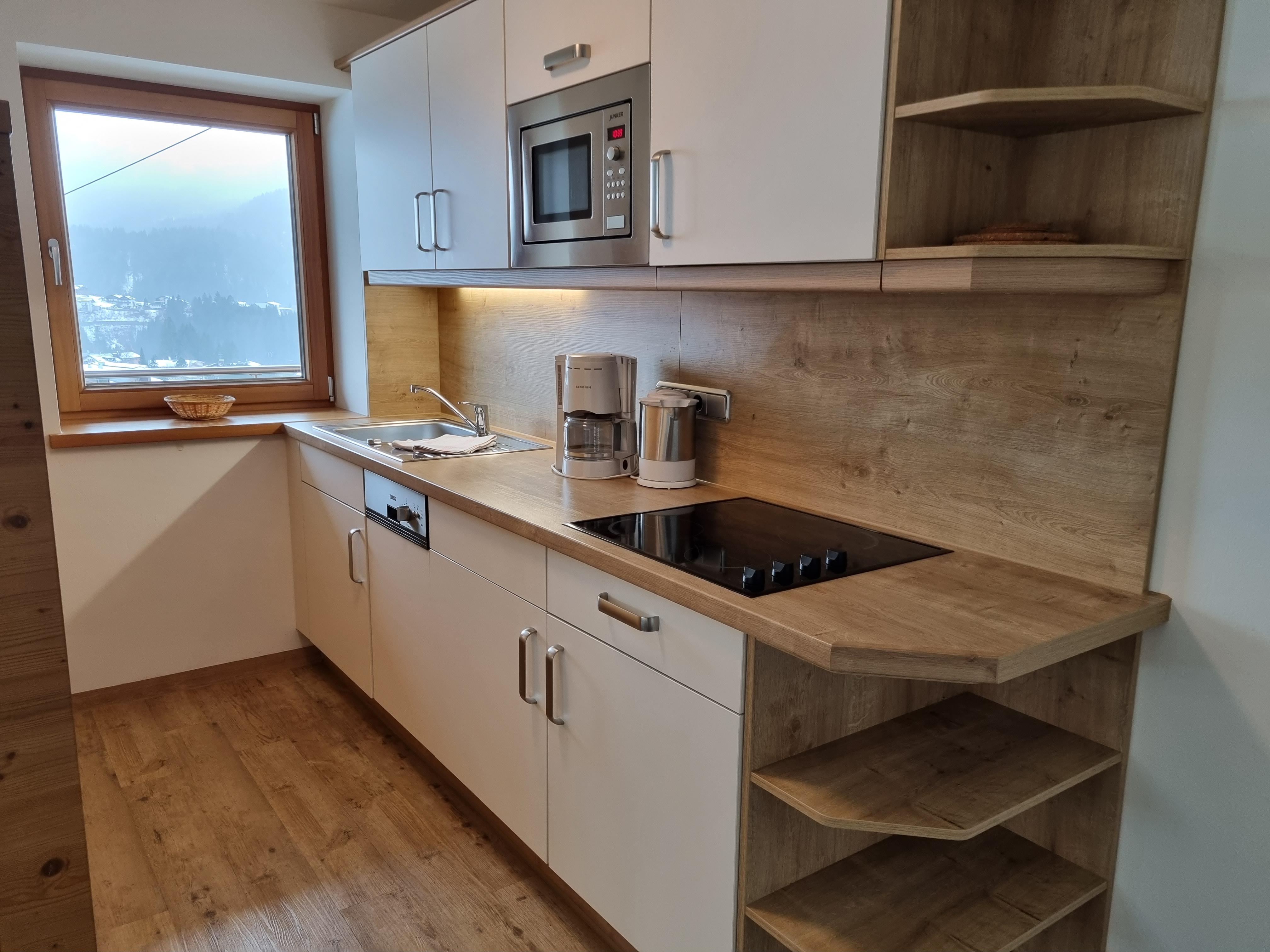 - Wohnessecke, Küchenzeile mit 4 Platten-Ceranfeld, Spülmaschine und Mikrowelle