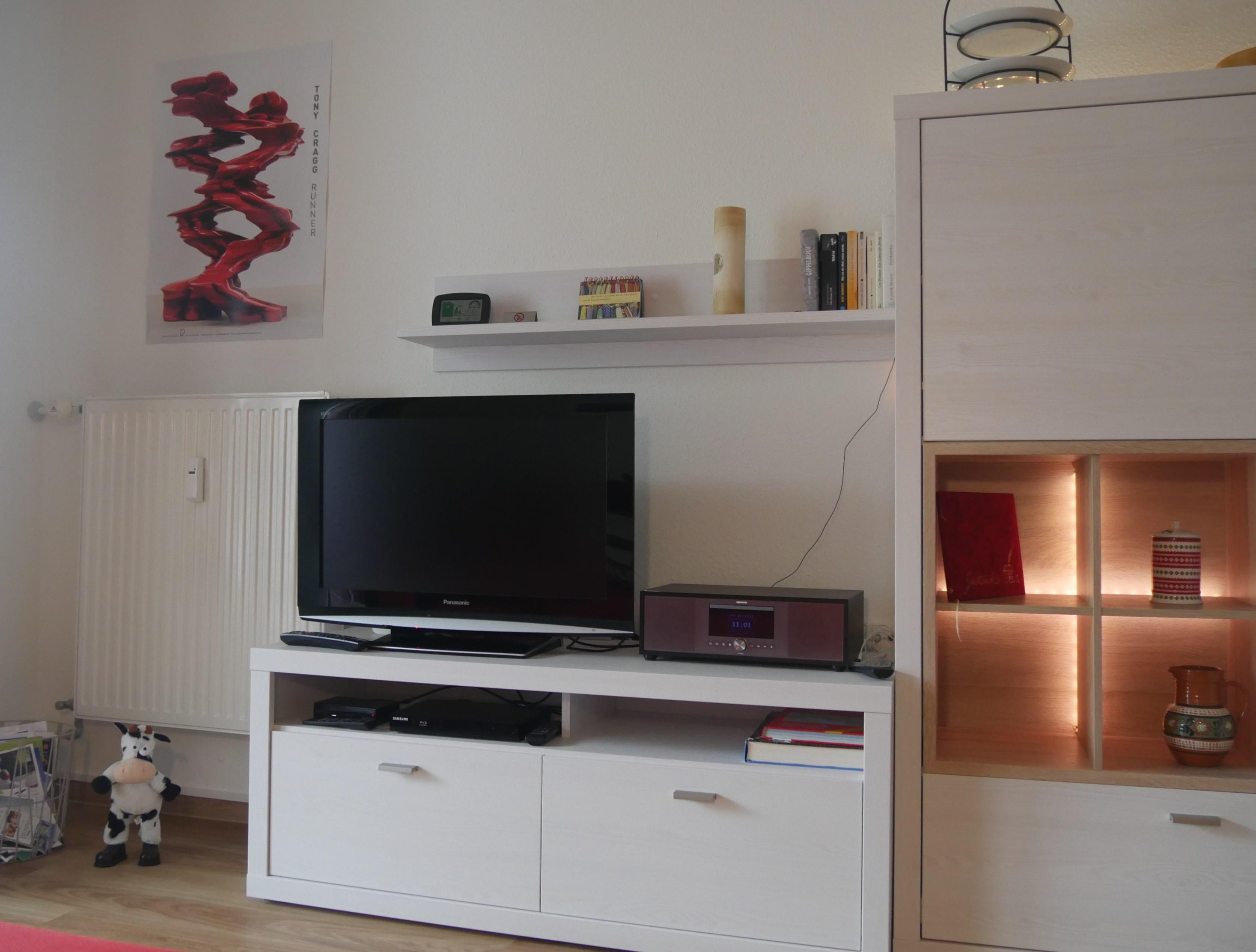 Flachbildfernseher (Kabel-TV), Blue-Ray-Player, CD-Player, Internetradio, WLAN,