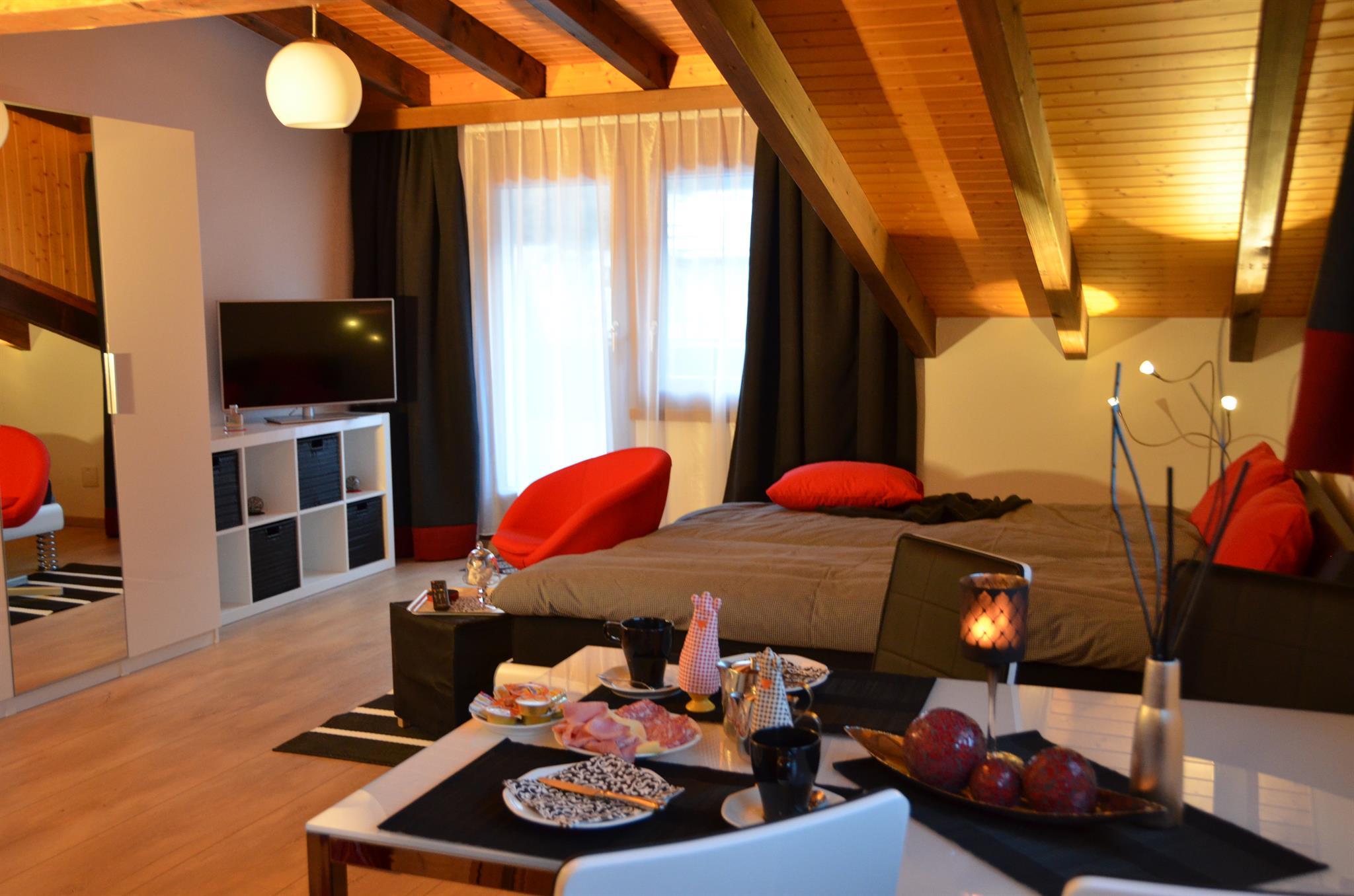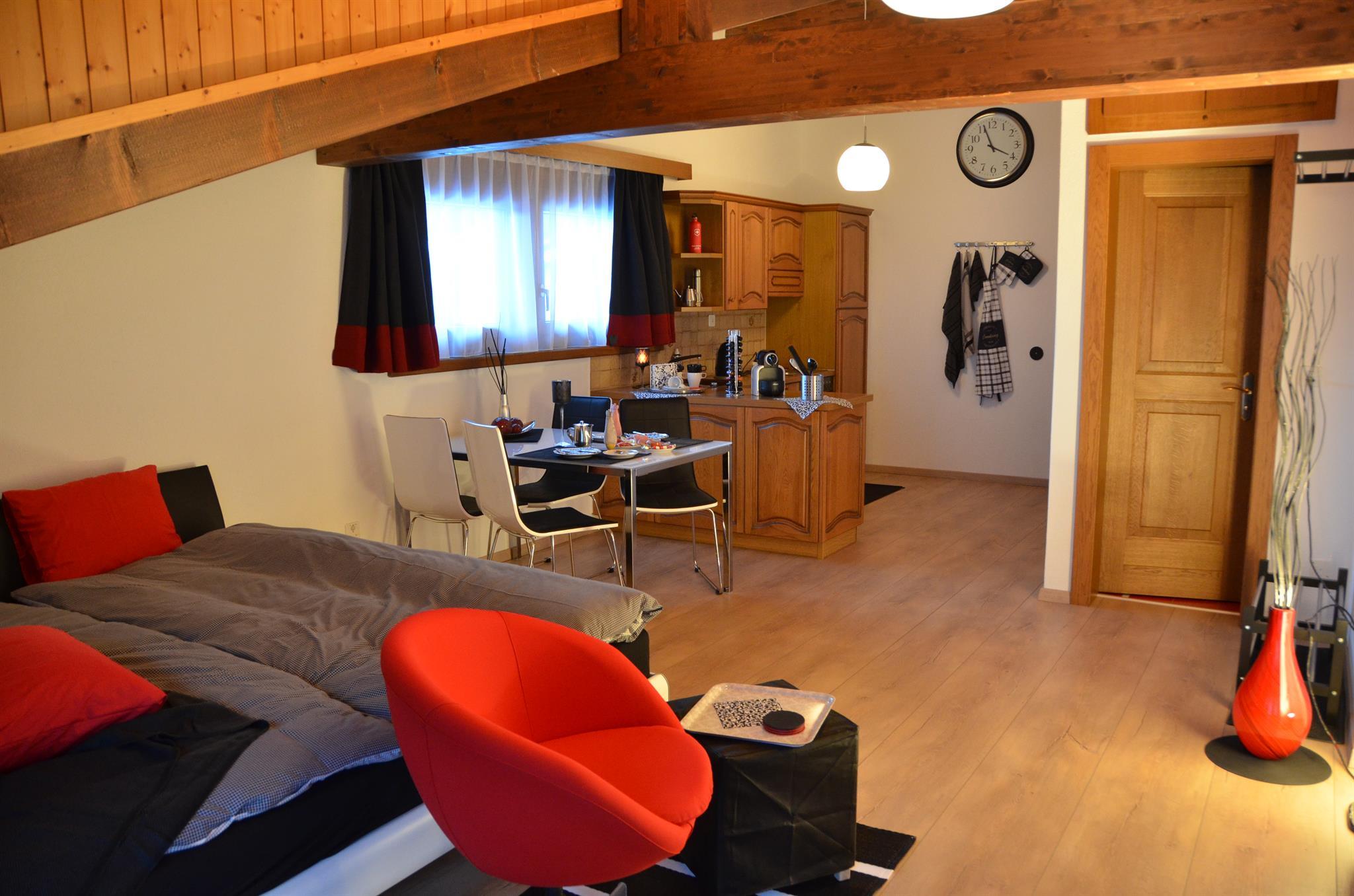 3 1/2-Zimmer-Wohnung im Jahr 2019 renoviert, 2 Schlafzimmer, 80m2, 50 m zur Bergbahn, Zimmer inklusive grosses Frühstück im Tearoom, sonnigem Balkon auf der Südseite, Küche, Kaffeemaschine, TV und WLAN. Auf Anfrage ist ein Anschluss für ein zusätzliches Schlafzimmer mit eigener Dusche und Toilette möglich