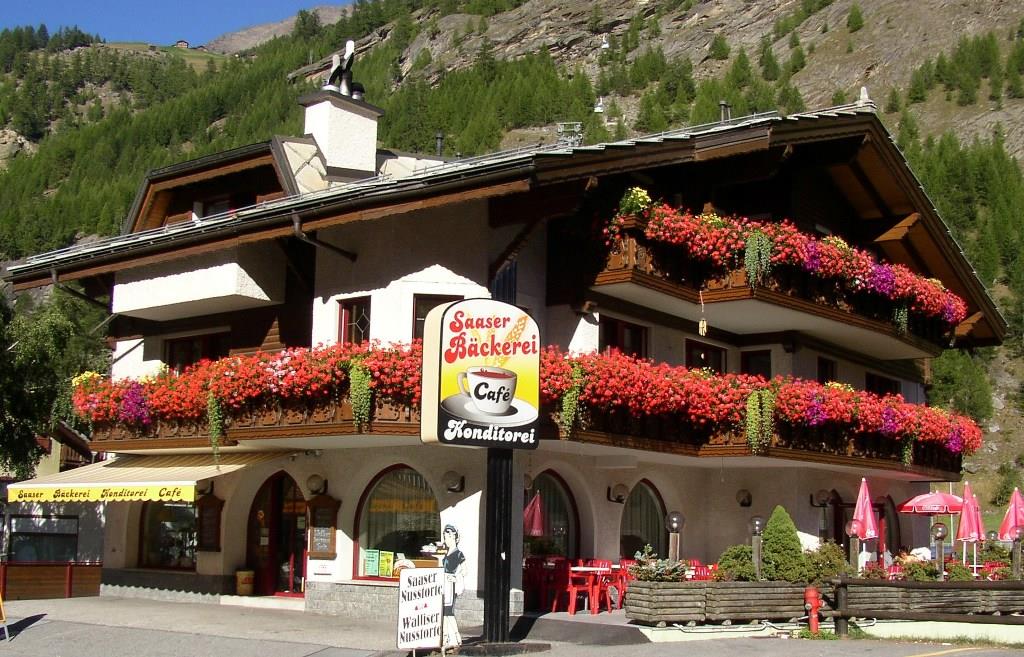 Haus Aione (Saaser Bäckerei) liegt mitten in Saas-Grund, sehr nahe Bergbahnen und Bushaltestellen. Inklusiv grosses Frühstück im Tea-room.