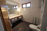 großes geräumiges Badezimmer mit Dusche u. WC, Fön und Kosmetikspiegel