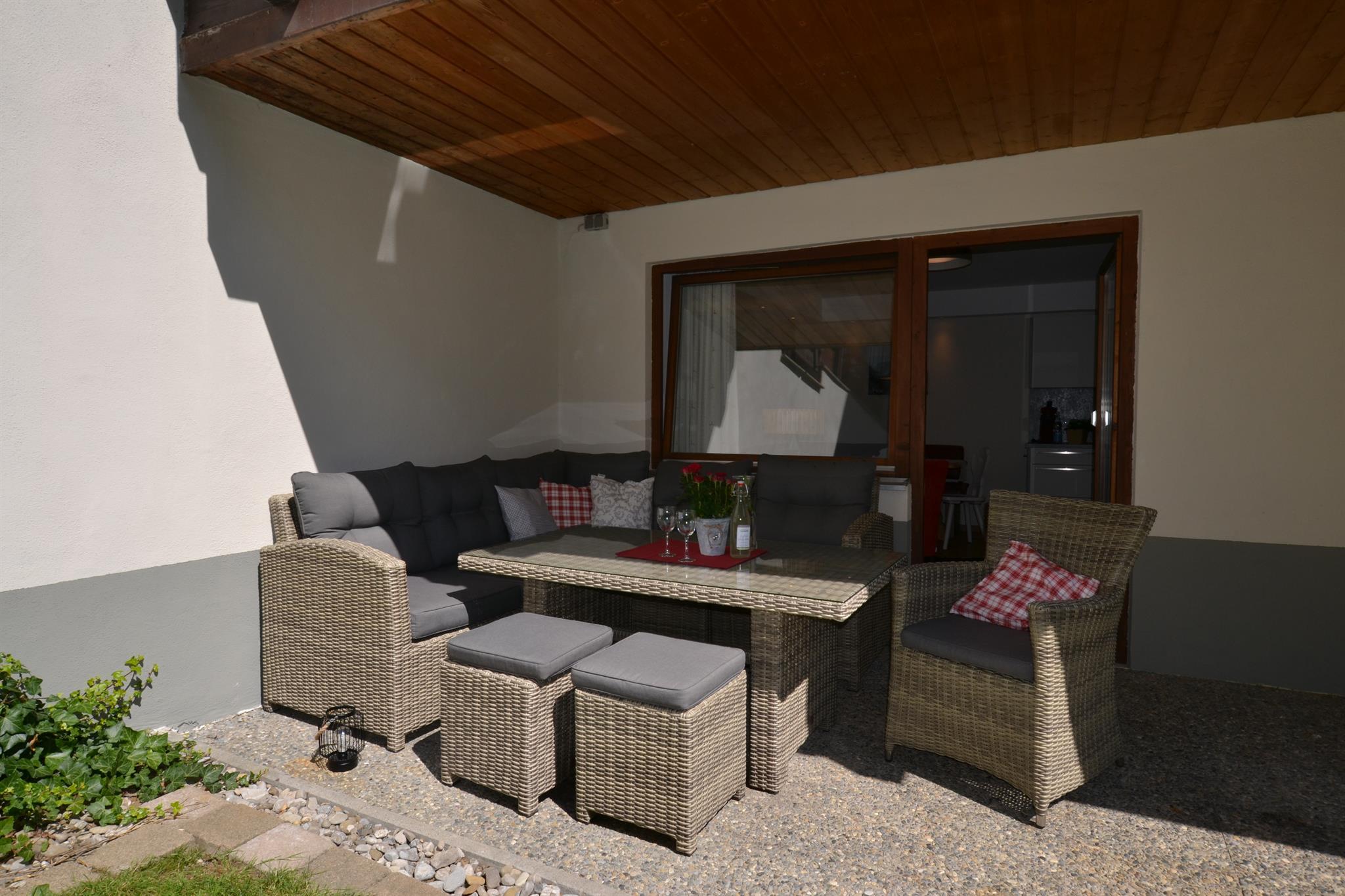 • Terrasse zur Gartenseite - begehbar vom Wohn/Essbereich. Geräusche (Strasse&Bäckereibetrieb) sind zu hören.