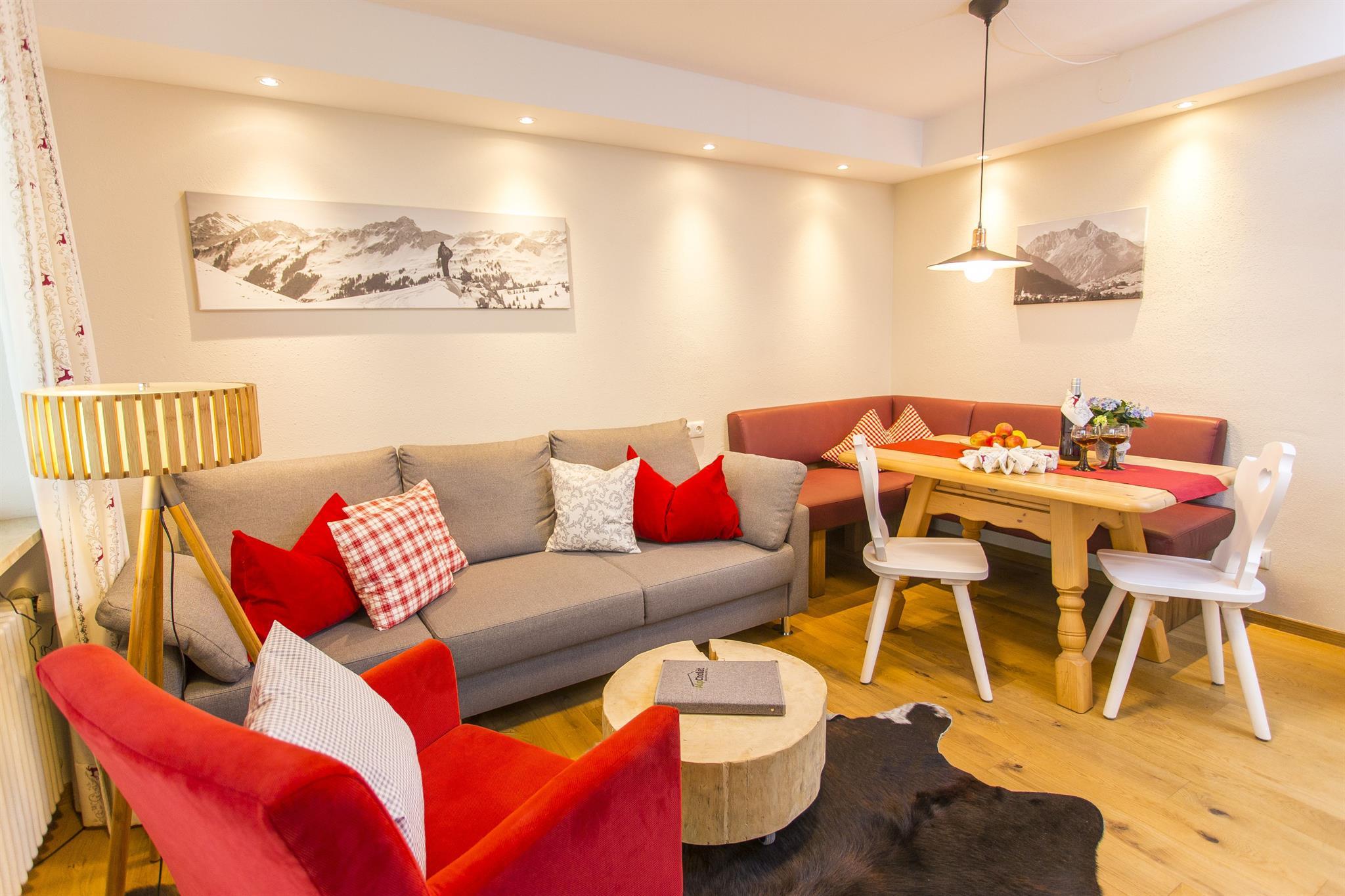 Erleben Sie Ferien im Herzen von Hirschegg. In unmittelbarer Nähe ist das Walserhaus, Bäckerei, Restaurants, Bushaltestelle und Bergbahn.