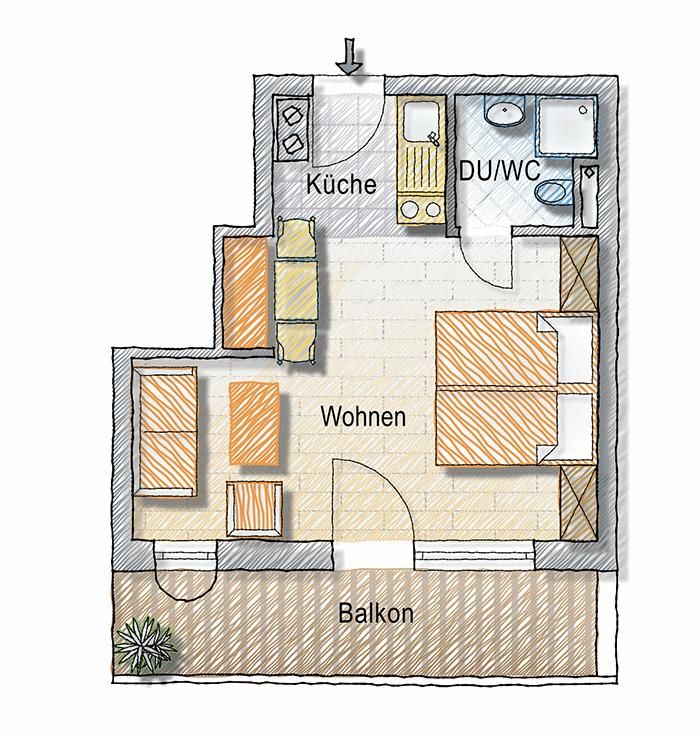 • 12 ruhige, zur Talseite gelegenen Wohnungen für 1-6 Pers, in unterschiedlichen Größen Balkon/Terrasse.