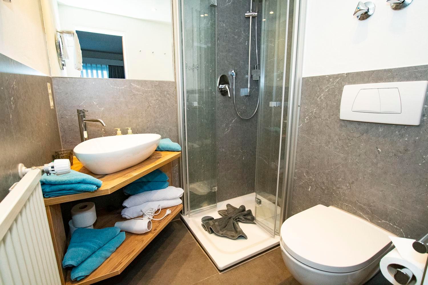 • Duschbad mit Fön, Kosmetikspiegel, und WC