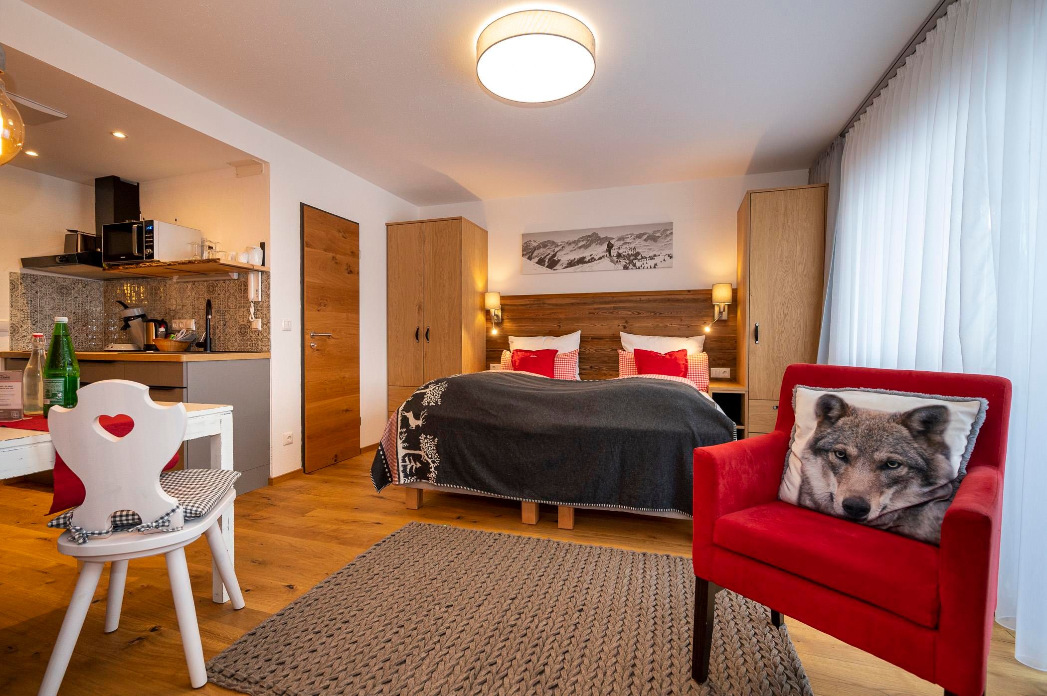 Erleben Sie Ferien im Herzen von Hirschegg. In unmittelbarer Nähe ist das Walserhaus, Bäckerei, Restaurants, Bushaltestelle und Bergbahn.