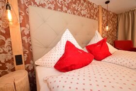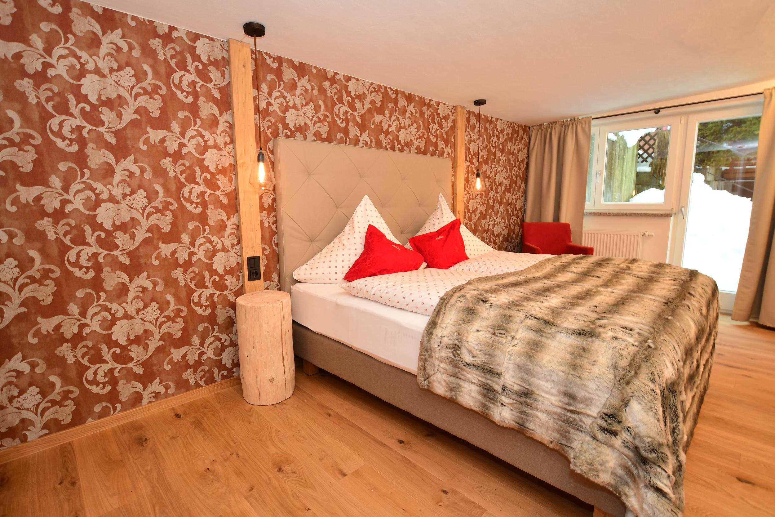 • Zweites Schlafzimmer mit Doppelbett aus Zirbe, Sat-TV
