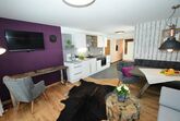 • Moderner Wohn-Essbereich mit Essecke, Couch, Sat-TV, Internetradio