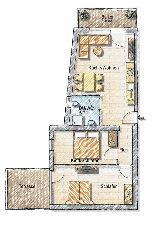 • 12 ruhige, zur Talseite gelegenen Wohnungen für 1-6 Pers, in unterschiedlichen Größen Balkon/Terrasse.