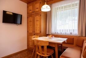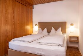 Apartment mit 47qm, großem Wohn- und Schlafbereich separat abtrennbar durch eine Schiebetüre; Doppel Boxspringbett im Schlafbereich, sowie 2 Schrankbetten und Couchecke im Wohnbereich. Küche, gemütliche Essecke, großes Bad mit Doppelwaschbecken und Dusche. Im Vorraum des Apartments sep.WC. Fliesenboden mit Fußbodenheizung sowie Radiatorenheizung. Telefon, Sat-TV, Safe, W-Lan. Der große Südbalkon mit Markise oder die Südterrasse mit Liegewiese und Bergblick. Brötchen- oder Frühstücksservice.