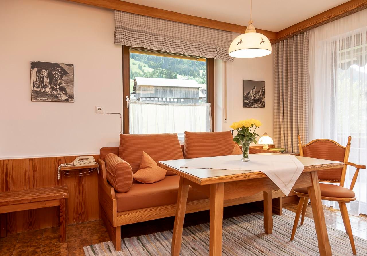 Sonnige, ruhige Südhanglage im Ortskern mit herrlichem Bergpanoramablick. Unser Haus ist im Alpenlandstil eingerichtet. Die Wohnungen, in verschiedenen Größen sind mit Südbalkon und Südterrasse ausgestattet, die Zimmer mit Balkon. Gerne servieren wir Ihnen unser reichhaltiges Walserfrühstück auf Anfrage oder bringen Ihnen die Brötchen. Im Sommer Bergbahnticket inklusive. Sauna, W-LAN, Aufenthaltsraum, Parkplatz am Haus. 3 Gehminuten zur Ortsmitte, Restaurants, Bus, Bergbahn, Kurpark, Schwimmbad.