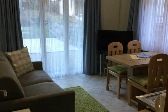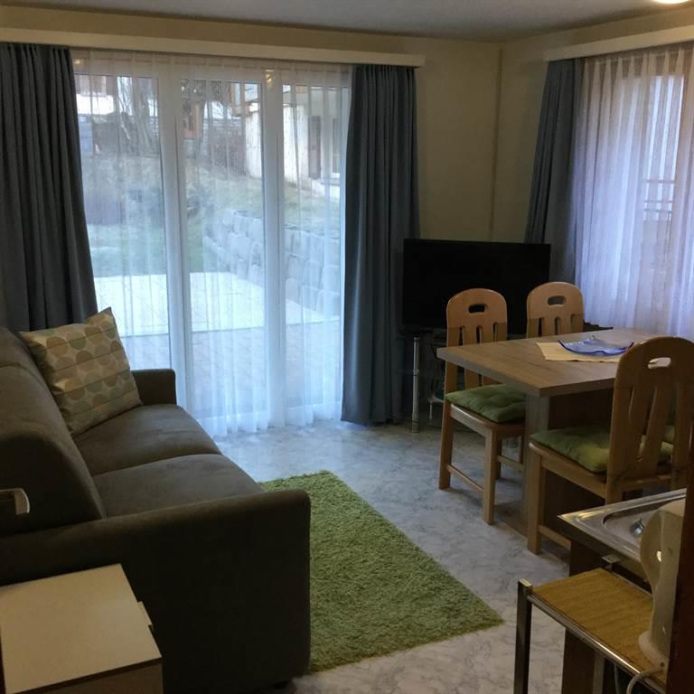 Die Wohnung befindet sich im Parterre und verfügt über eine gemütliche Wohnküche, ein Doppelschlafzimmer, Badezimmer und Balkon. Privatparkplatz.