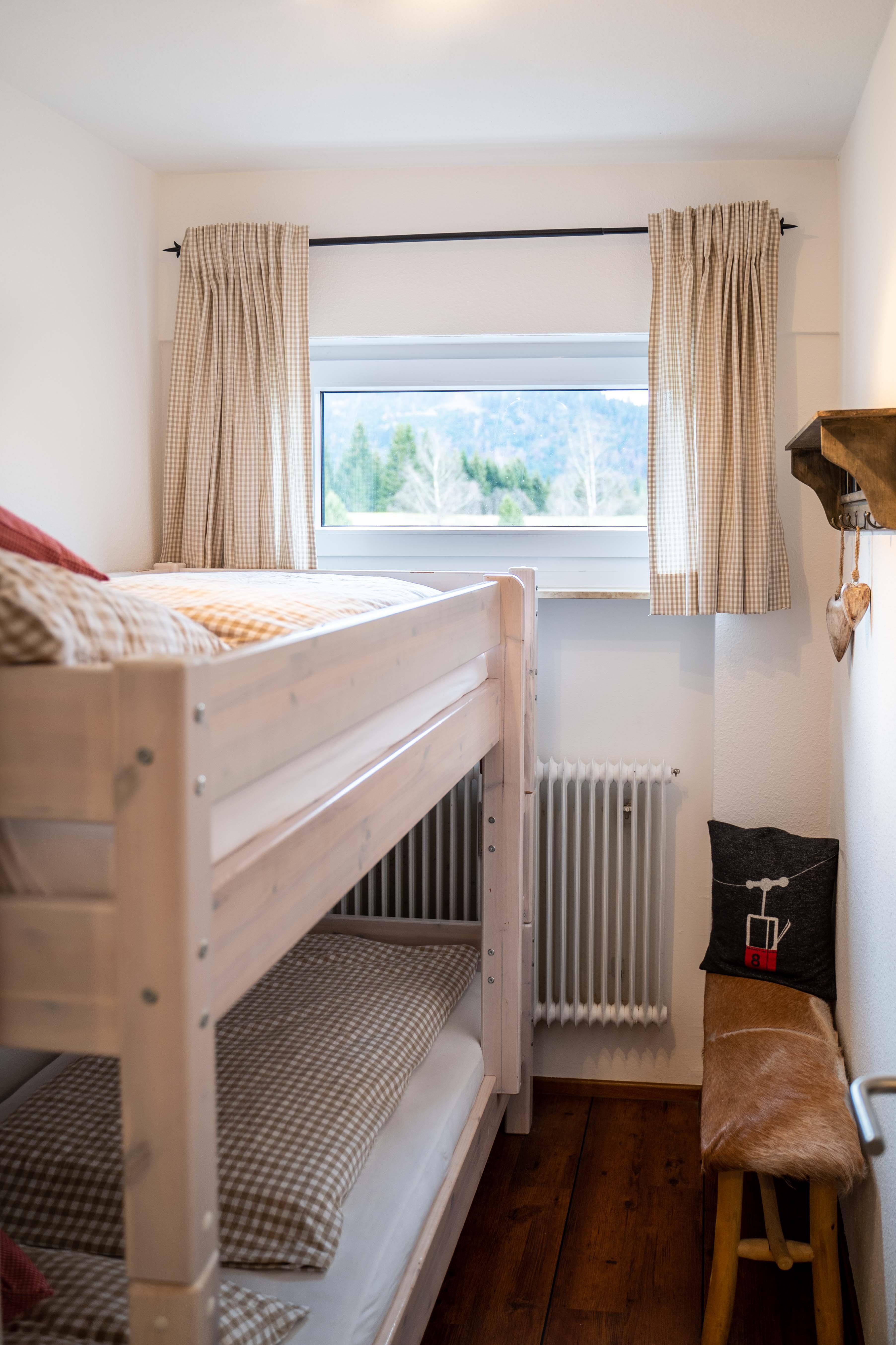 Die Erdgeschosswohnung verfügt über 2 Schlafzimmer - 1 mal Doppelbett und 1 mal Stockbett, Wohn / Esszimmer, Dusche / WC, Südbalkon mit Gartenmöbel sowie eine große Liegewiese. Die separate Küche ist mit einem Kühl/Gefrierschrank, Induktionskochfeld, Backofen, Spühlmaschine, Filterkaffeemaschine Filter 1x4, Nespressomaschine, Wasserkocher, Toaster, uvm. ausgestattet. Technische Einrichtungen wie Flatscreen TV, Bluetooth Musikanlage sind vorhanden.
