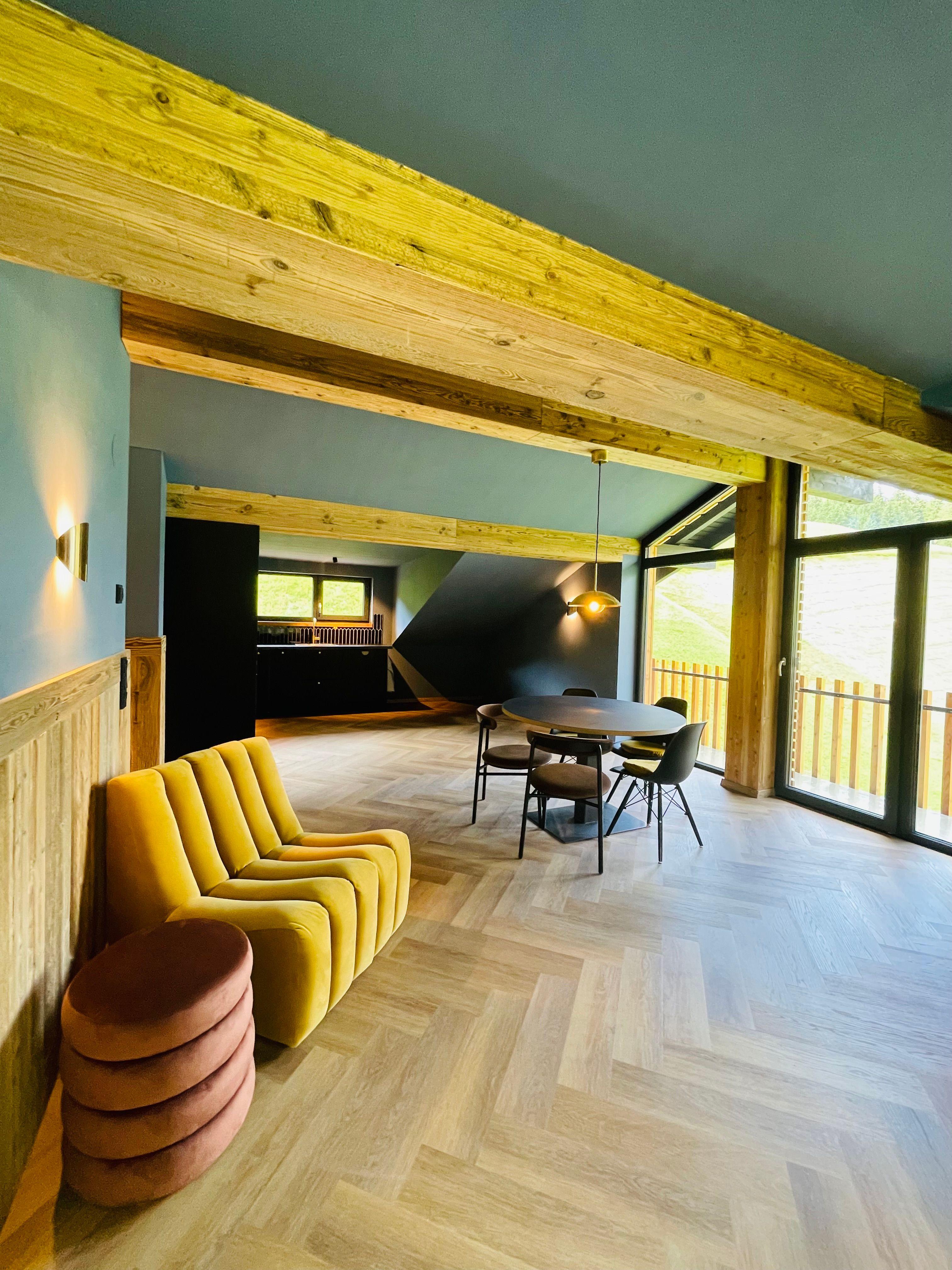 Ein angenehmer Aufenthalt erwartet Sie in diesem luxuriösen und charmanten 85m2 Loft. Die geräumige Wohnung hat 2 Schlafzimmer, 2 Bäder, eine moderne Küche, ein großes Wohnzimmer und einen nach Osten gerichteten Balkon. Vom Essbereich aus haben Sie durch das große Panoramafenster einen schönen Blick auf die Berge. Das größere Schlafzimmer hat eine zusätzliche kuschlige Schlafnische für eine Person, sodass Sie hier bequem auch mit drei Personen schlafen können.