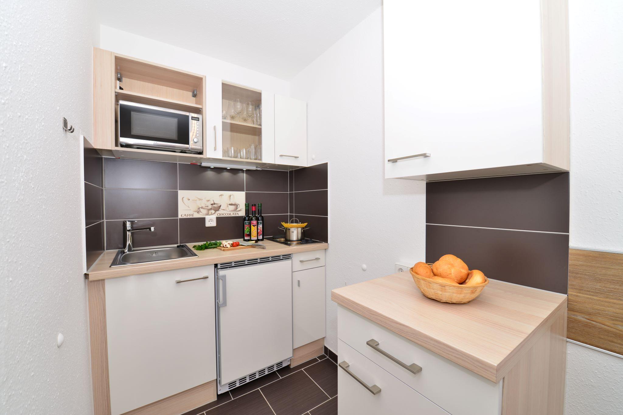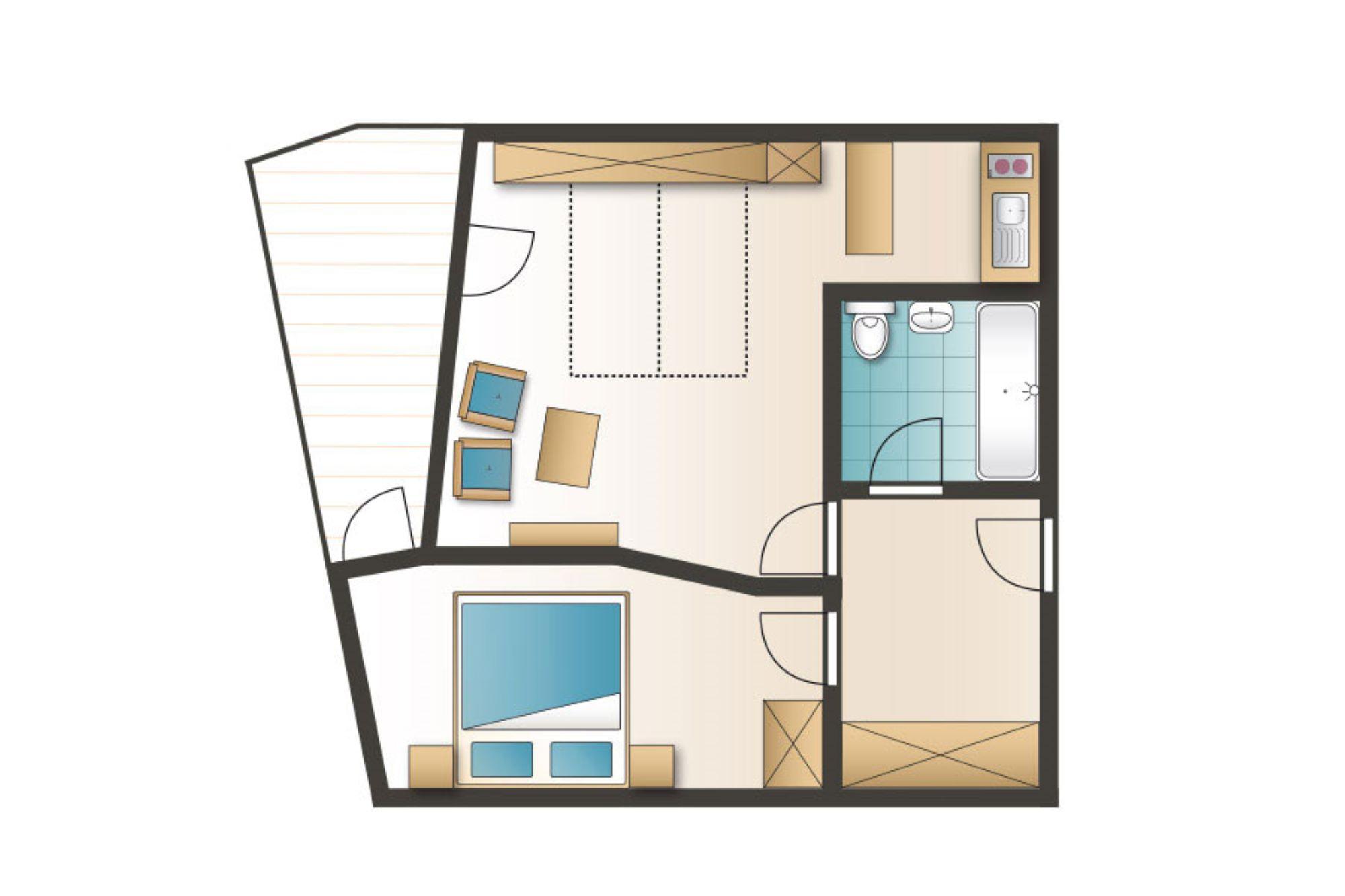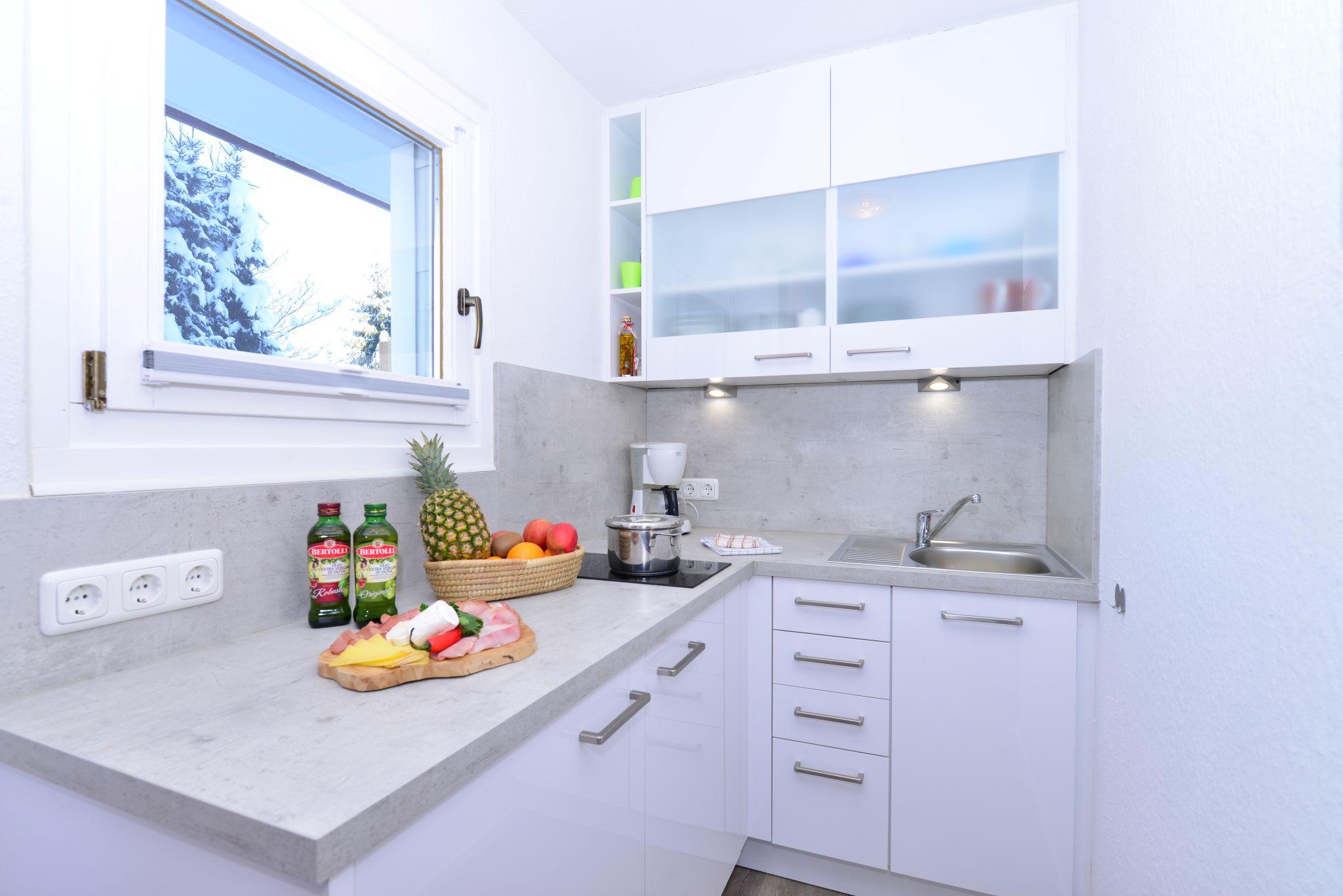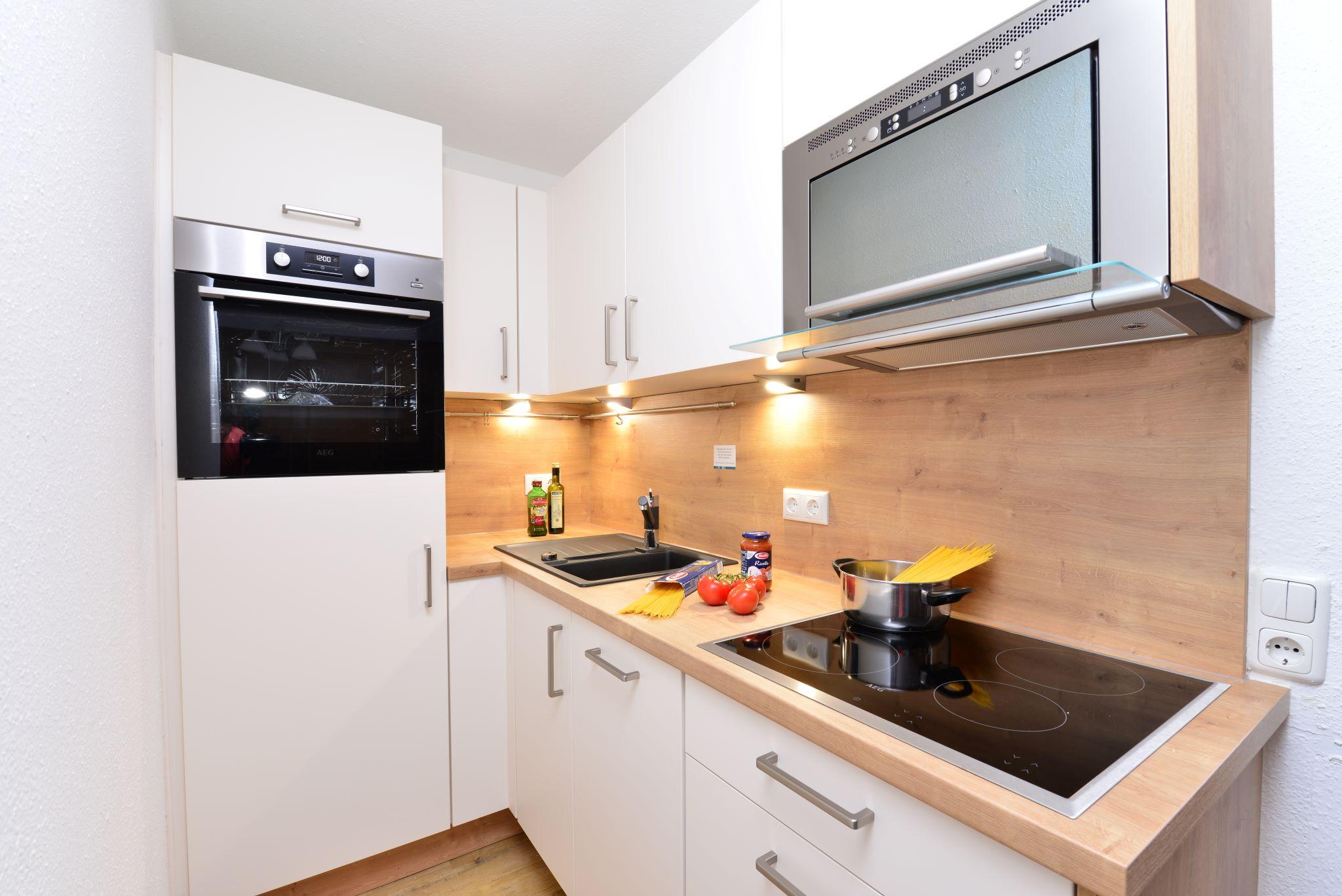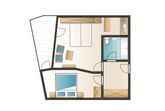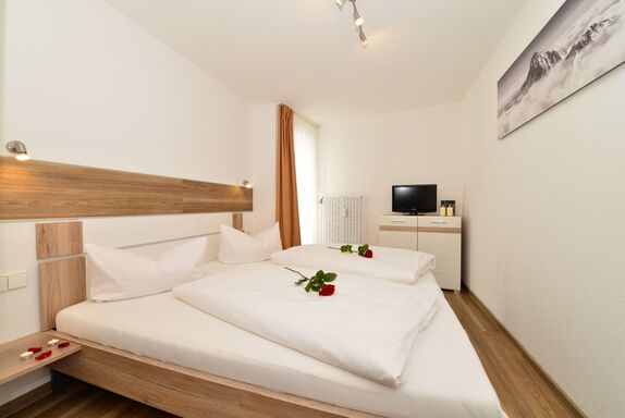 Exklusives 2-Raum Appartement für 2-4 Personen mit Doppelbett im Schlafzimmer und einer weiteren Schlafmöglichkeit für 2 Personen im Wohnbereich in Form von Schrankbett oder Schlafsofa. Das Appartement verfügt über eine Küchenzeile, einen privaten Balkon, ein Bad mit Dusche (oder Wanne?) und Flatscreen-TV. Von Mai bis November ist das Bergbahnticket inklusive.