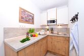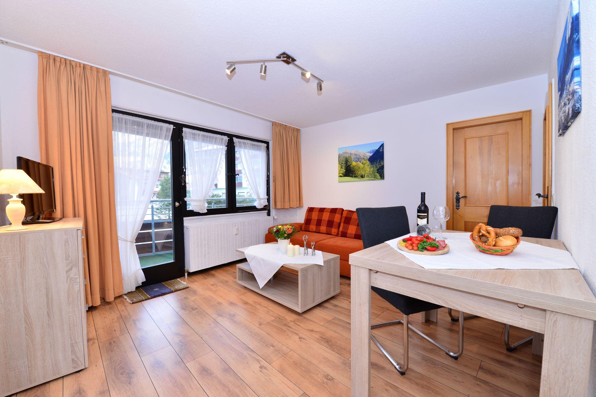Wohnlich eingerichtetes 2-Raum Appartement für 2-4 Personen mit Queensize-Bett im Schlafzimmer und einer weiteren Schlafmöglichkeit für 2 Personen im Wohnbereich in Form von Schrankbett oder Schlafsofa. Das Appartement verfügt über eine Kochnische, einen privaten Balkon, ein Bad mit Dusche oder Wanne und Flatscreen-TV. Von Mai bis November ist das Bergbahnticket inklusive.