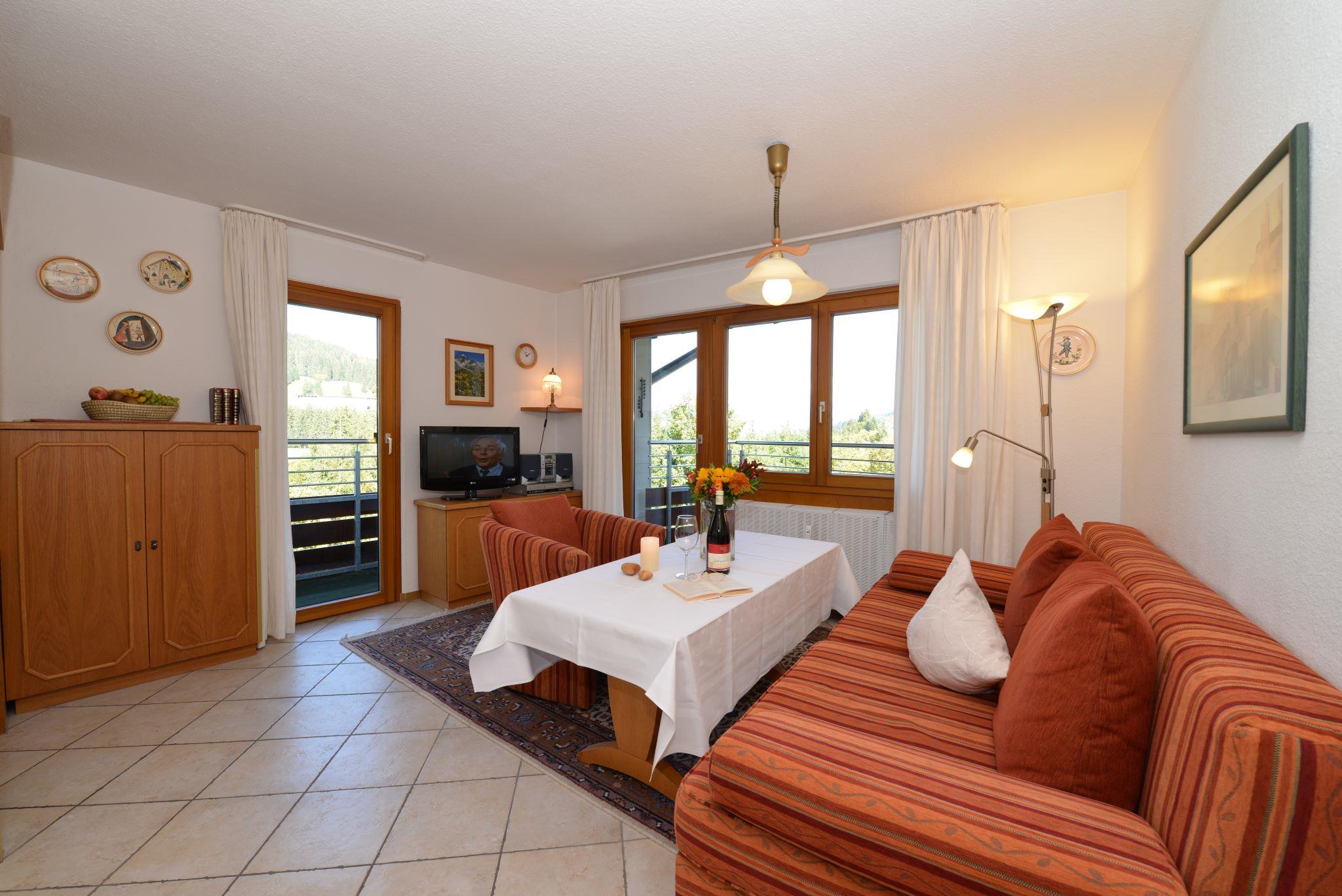 Wohnlich eingerichtetes 2-Raum Appartement für 2 Personen mit Einzelbetten im Schlafzimmer. Das Appartement verfügt über einen Wohnbereich mit Kochnische, einen privaten Balkon, ein Bad mit Dusche oder Wanne und Flatscreen-TV. Von Mai bis November ist das Bergbahnticket inklusive.