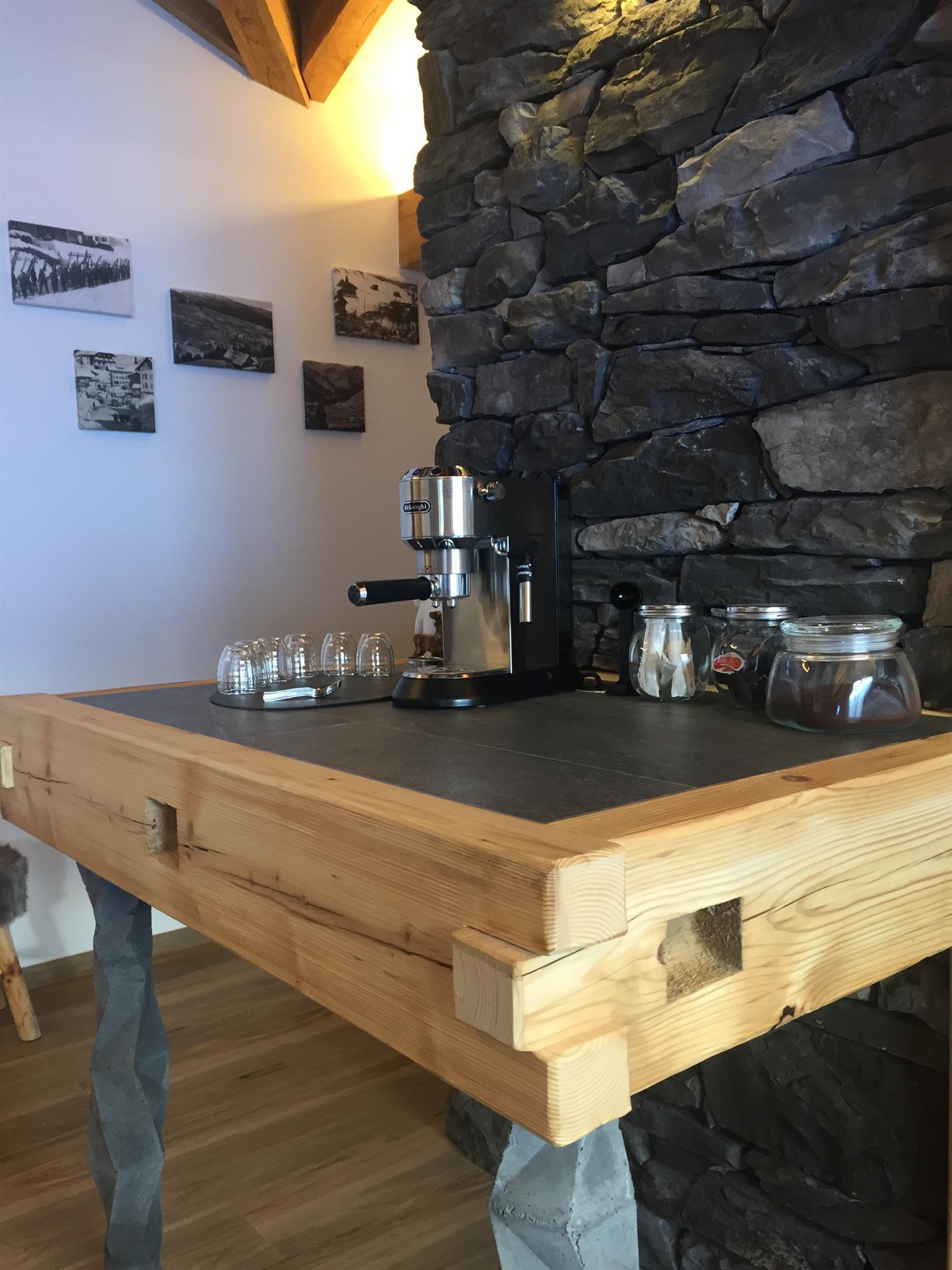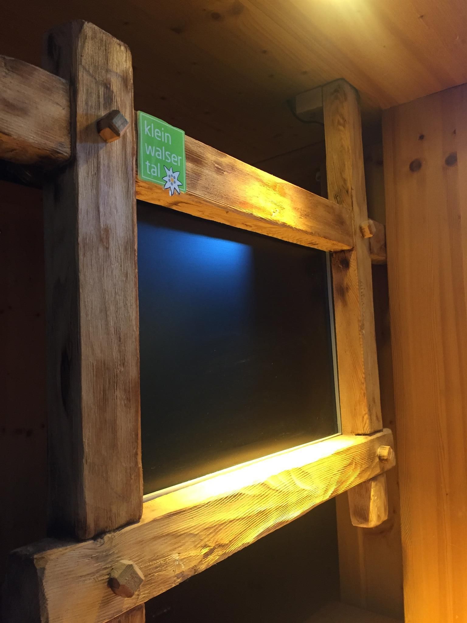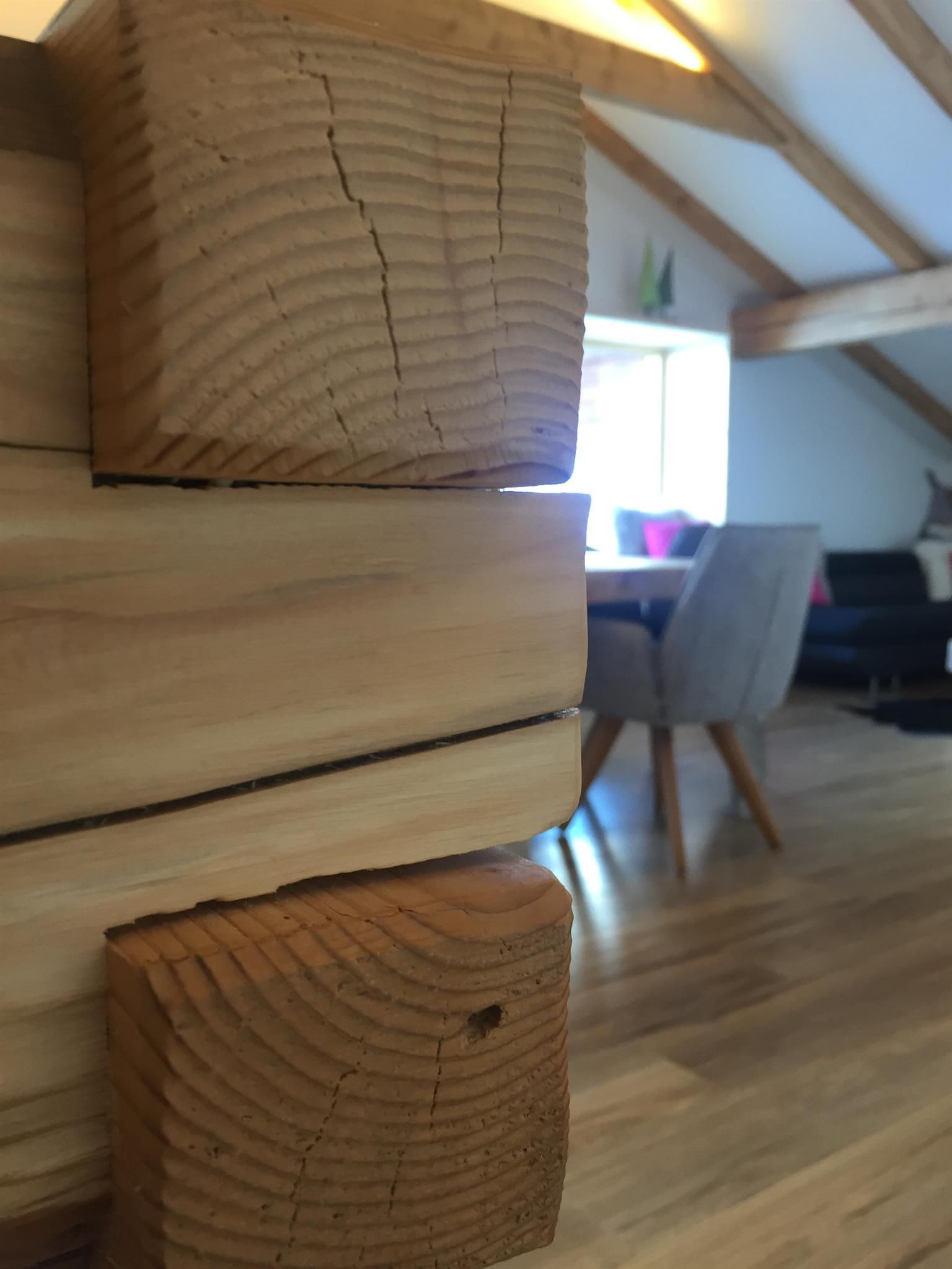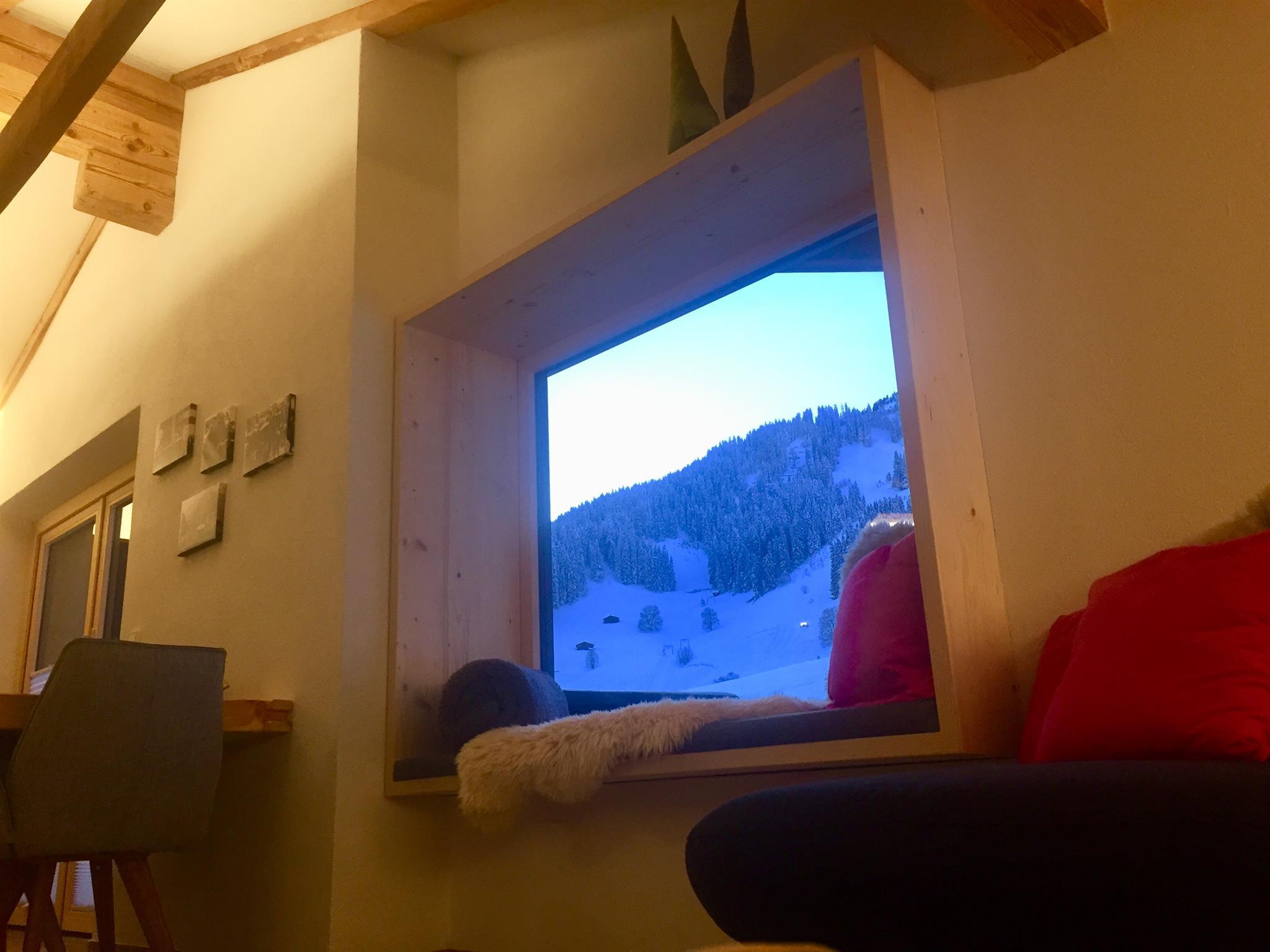 In Verbindung mit der indirekten, dimmbaren Beleuchtung kommt der alpenländische Chalet - Charme der Wohnung zur Geltung.