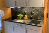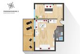 Ferienwohnung Typ 3, 42qm für 2 Personen, Wohnraum mit Sofa, sep. Schlafzimmer (Doppelbett), Kochzeile, Dusche/WC, SAT-TV, Safe, W-LAN, Radio und Terrasse.
