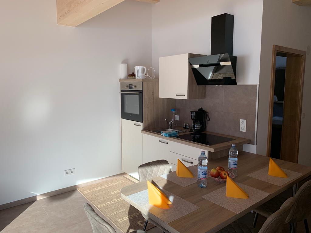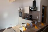 Die integrierte Küche ist ausgestattet mit Kaffee-Maschine für Filterkaffe und einer Nespresso-Maschine, Toaster, Wasserkocher, Backofen und Spülmaschine.
