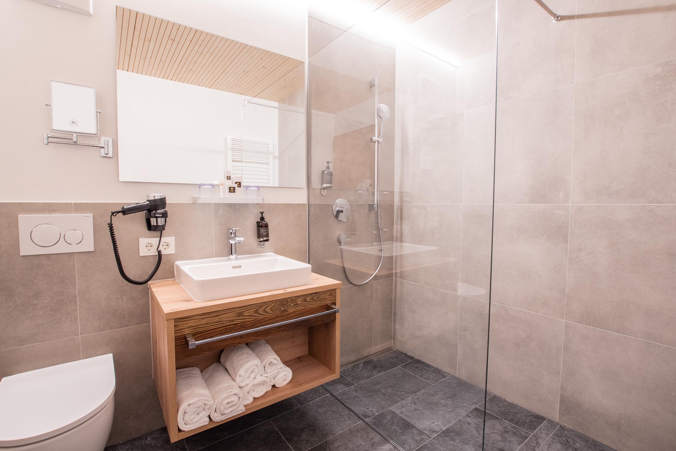 • Badezimmer mit Dusche/WC, Fön, Bademänteln & Pflegeprodukten