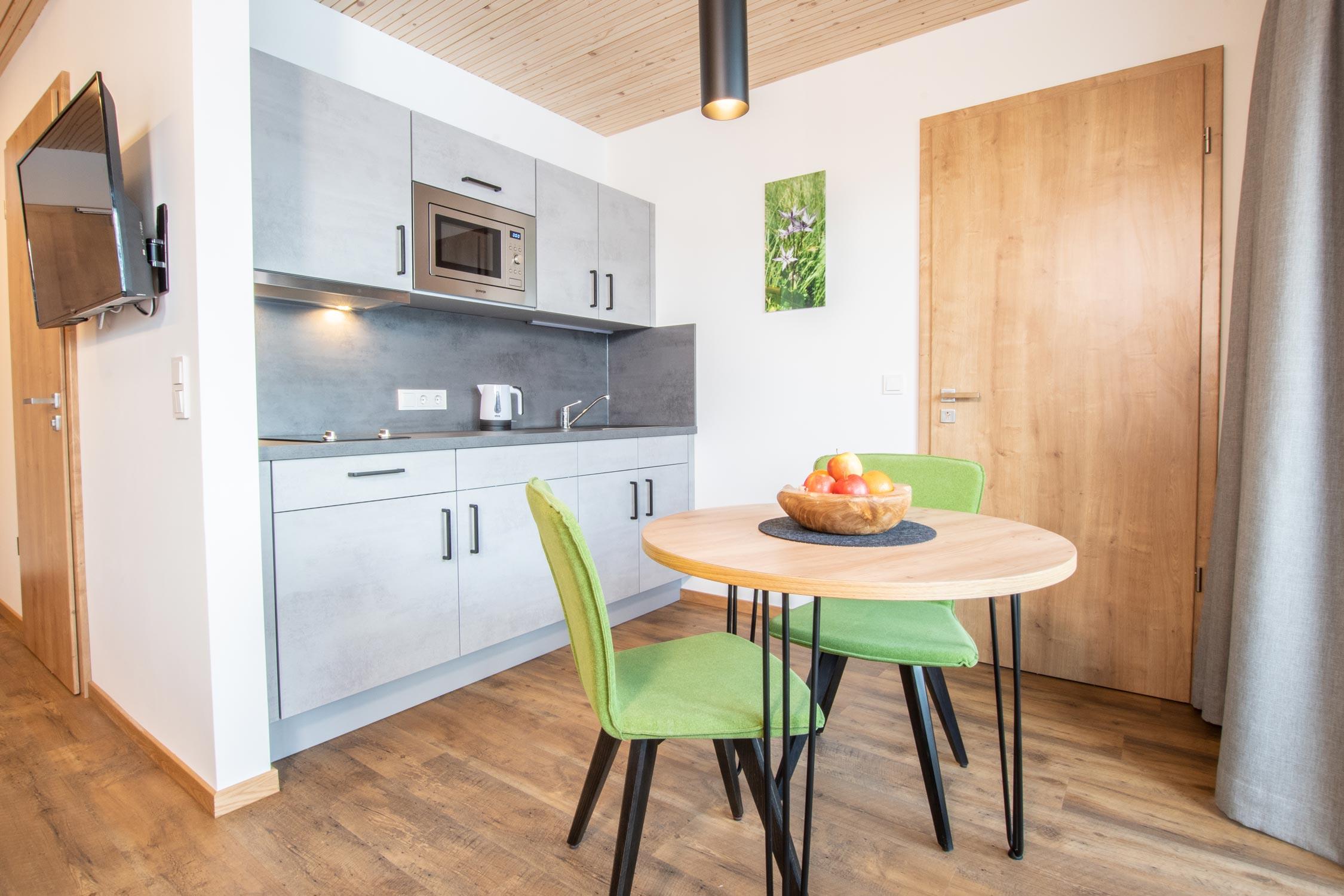 Hochwertige Materialien und ein behagliches Raumklima geben viel Platz für Entspannung und Genuss. Dazu ein großer Balkon mit einem harmonischen Bergpanorama vom Osterberg bis zum Nebelhorn.